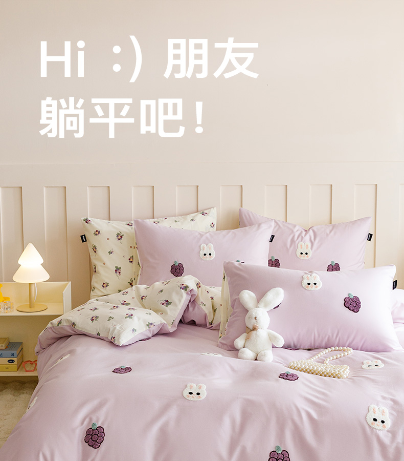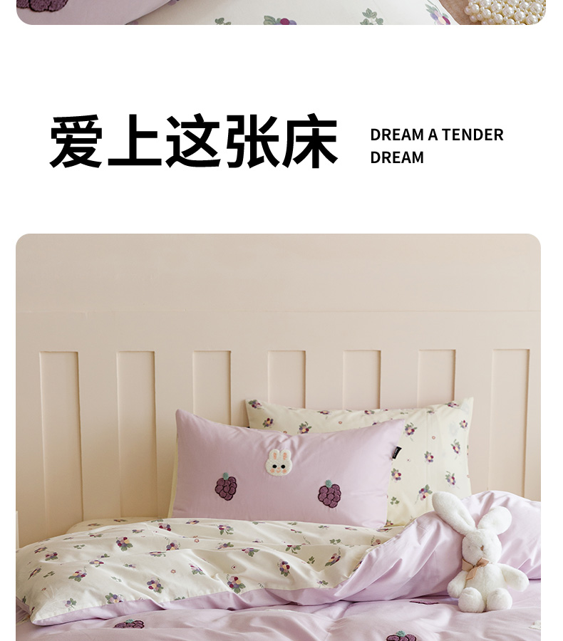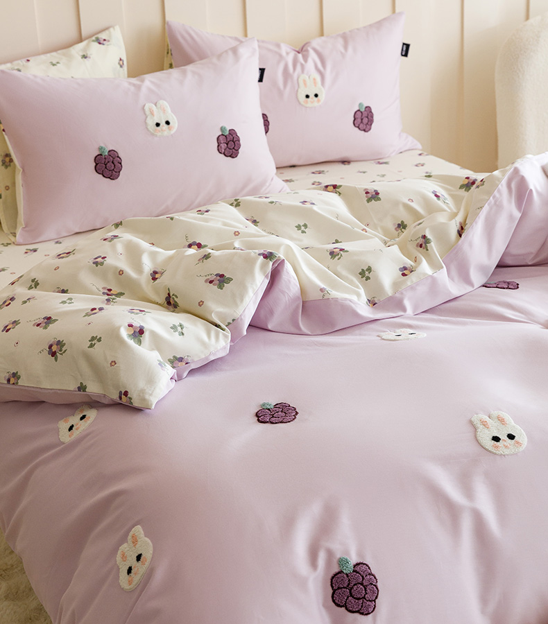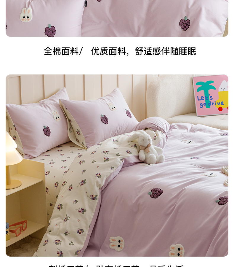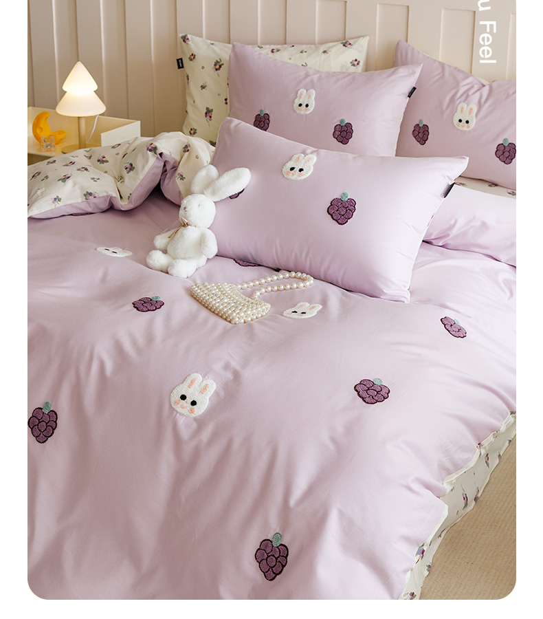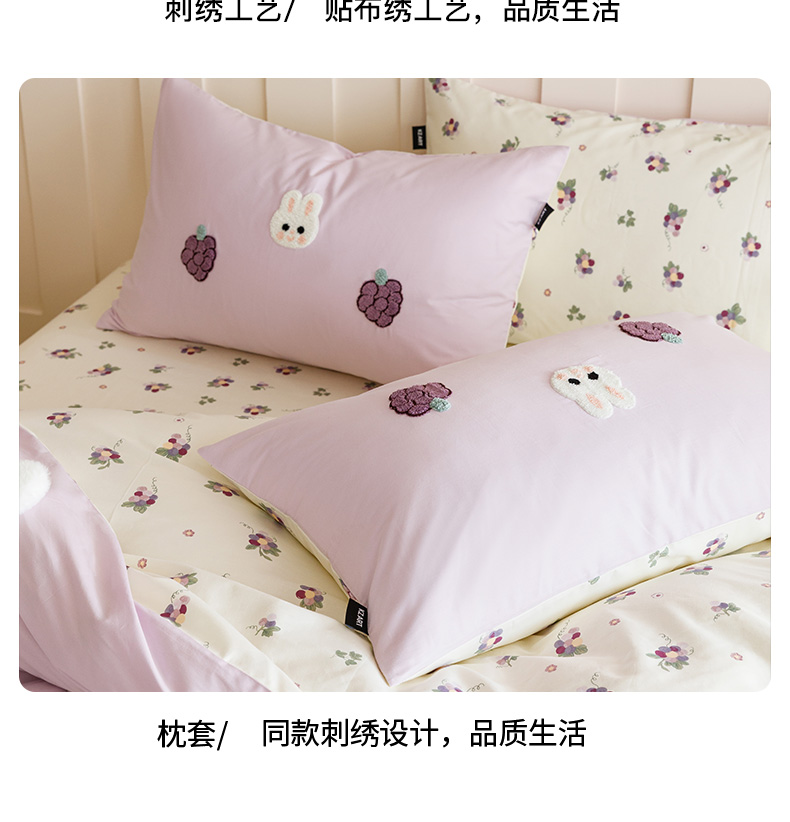 卡姿家纺 2025春夏新款ins风毛巾绣—葡萄小兔子系列四件套 葡萄小兔子-紫