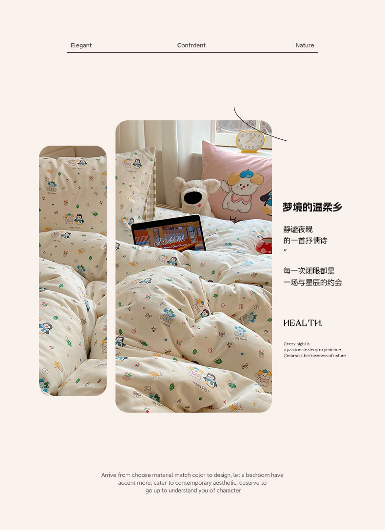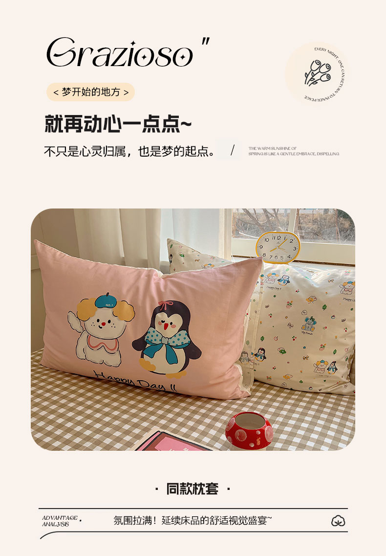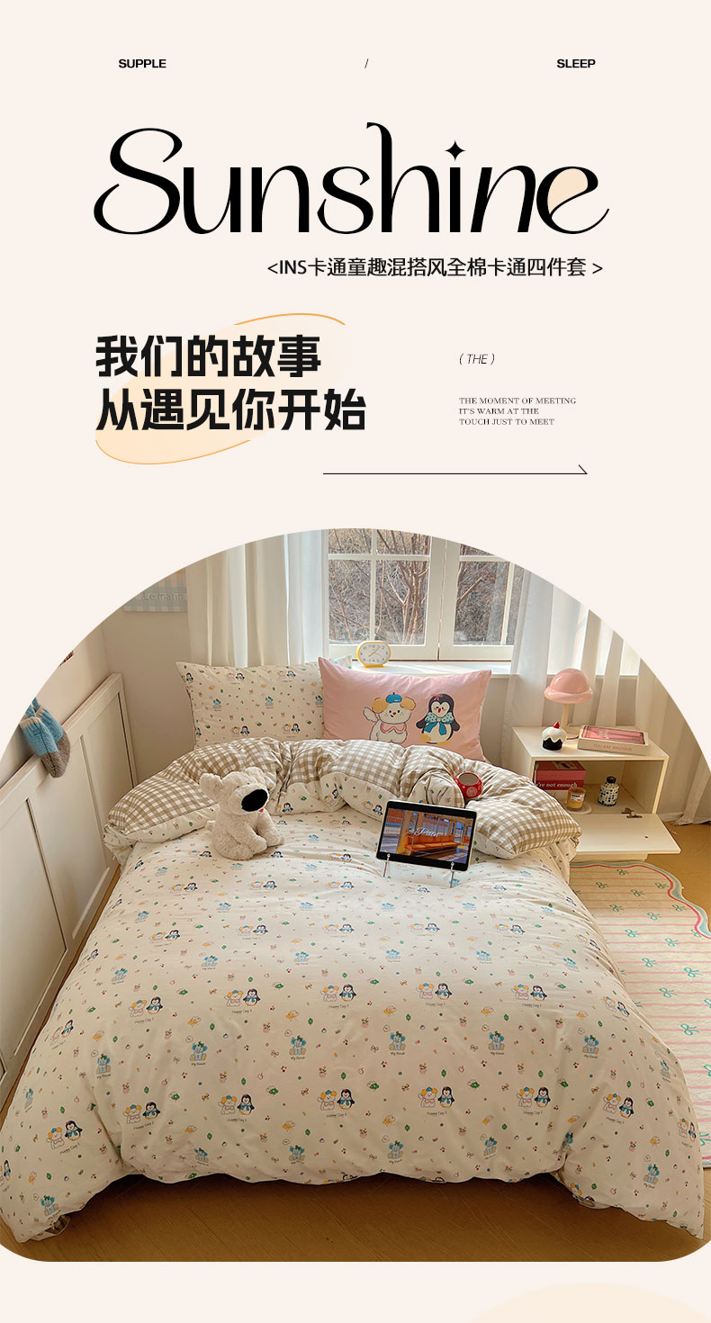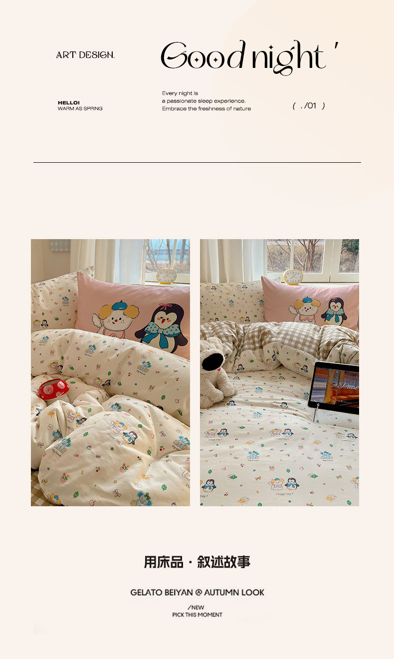 六巷胡同 2025新款INS卡通童趣混搭风全棉卡通四件套 混搭-企鹅的朋友