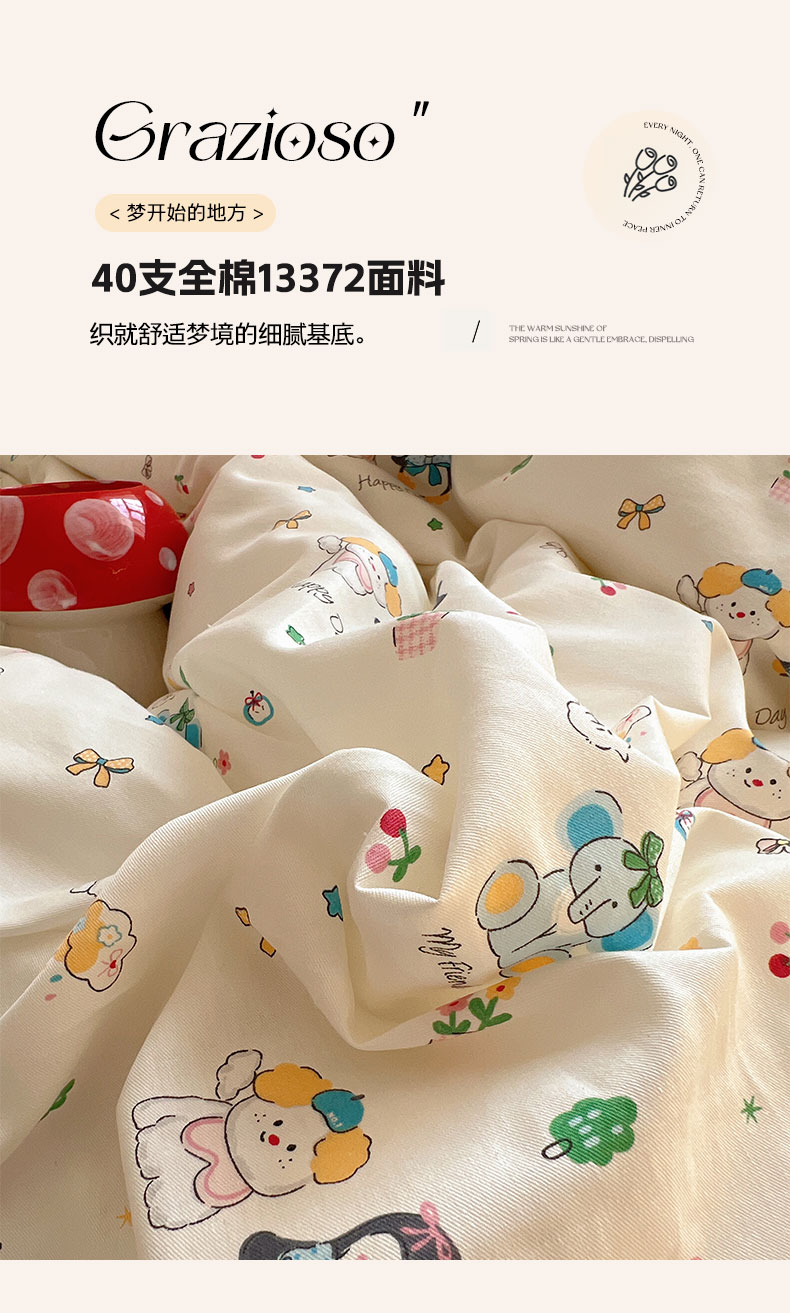 (总)六巷胡同 2025新款 INS减龄可爱风卡通全棉四件套第五系(森林音乐会系列),波点嘟嘟猫,点点面包犬,调皮蔷薇狗,哈喽泡芙猫,蓝格插画犬,森林音乐会