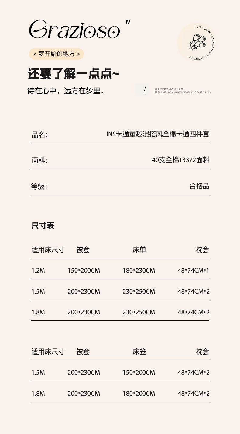 (总)六巷胡同 2025新款INS卡通童趣混搭风全棉四件套第二系,混搭-蛋糕围兜熊,混搭-奶油酣睡熊,混搭-奈斯羞羞狗,混搭-小蓝格甜点,混搭-雪糕哈皮熊,混搭-月亮睡睡熊