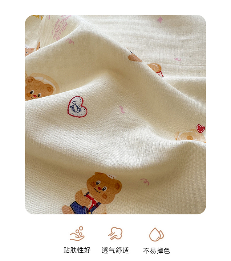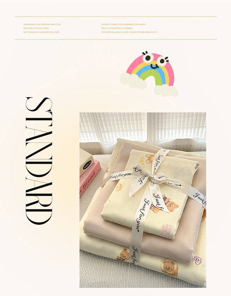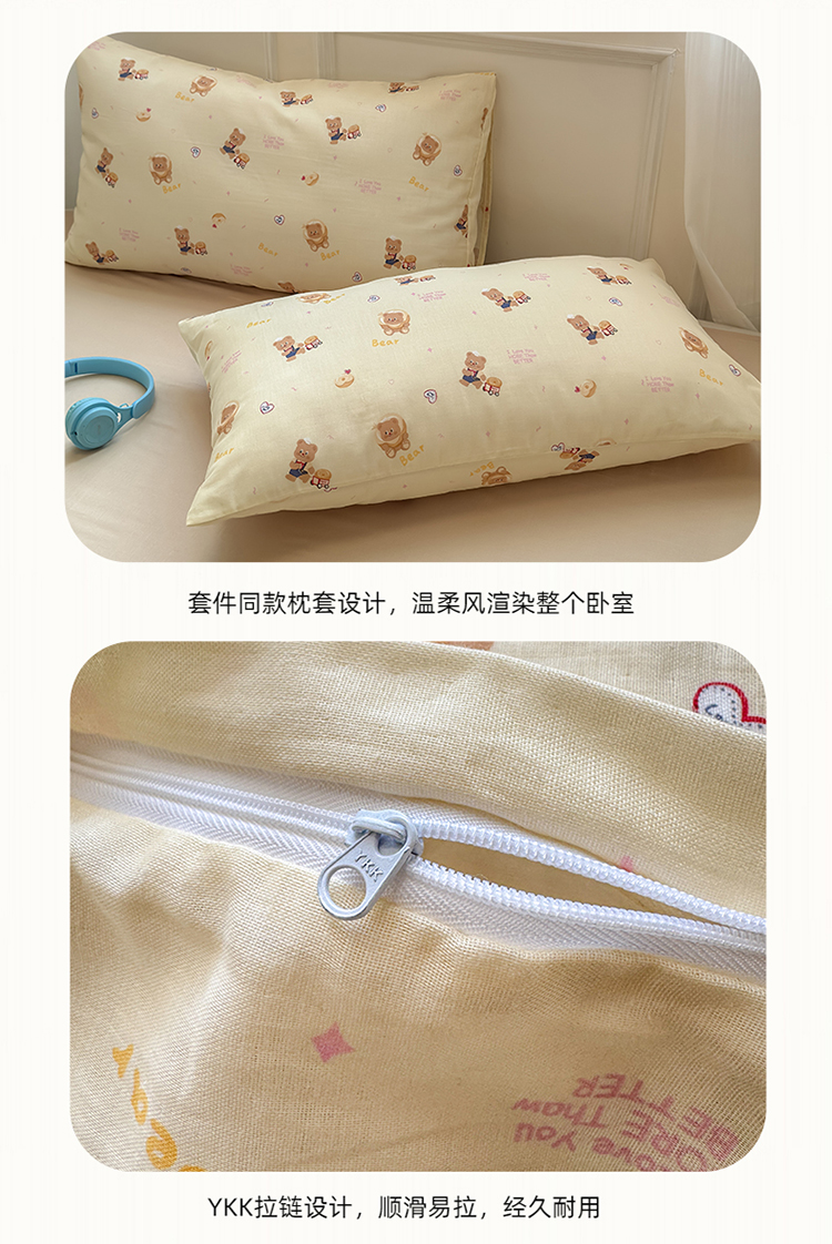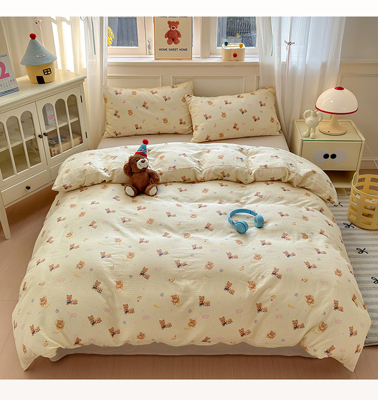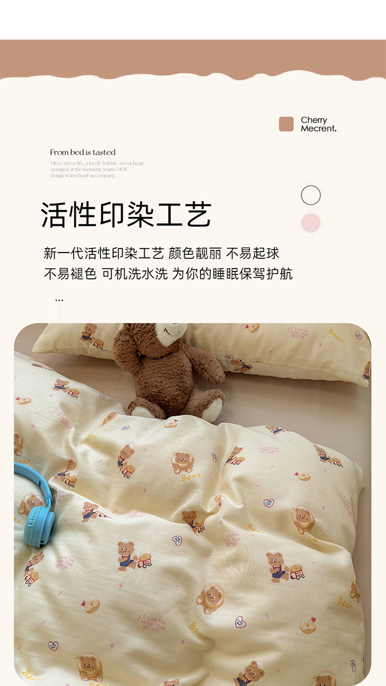 商品名称:2025新款全棉A类双层纱四件套系列-叠拍 面包熊