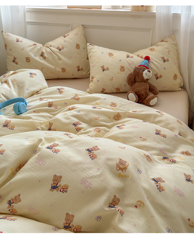 2025新款全棉A类双层纱四件套系列-叠拍 面包熊
