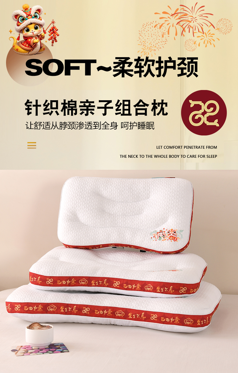 商品名称:(总)金牛枕芯 2025新款亲子组合枕针织卡通如意纹儿童学生成人枕头枕芯
