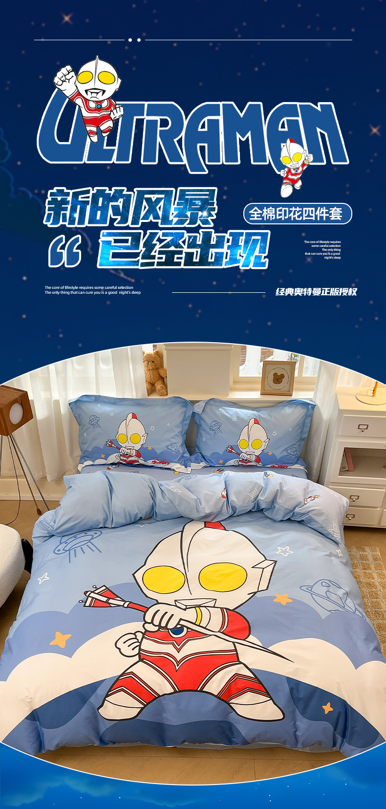 当前位置: 91家纺网 > 商品网购 > 床品套件 > 四件套 > 全棉普通四件套 > 蘭菲家纺 2025新款奥特曼全棉四件套 独行者