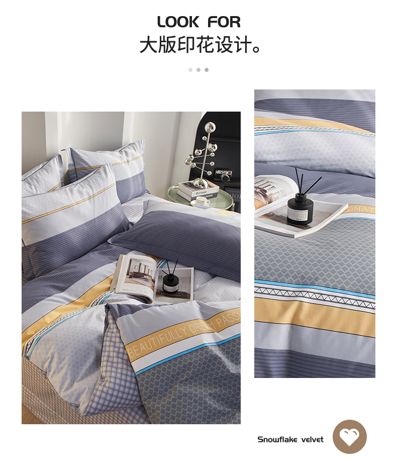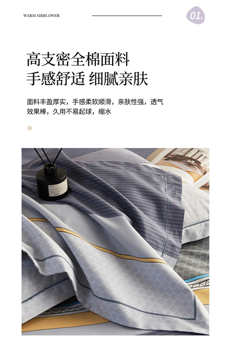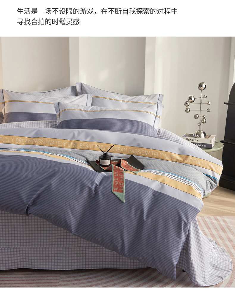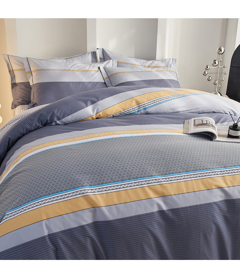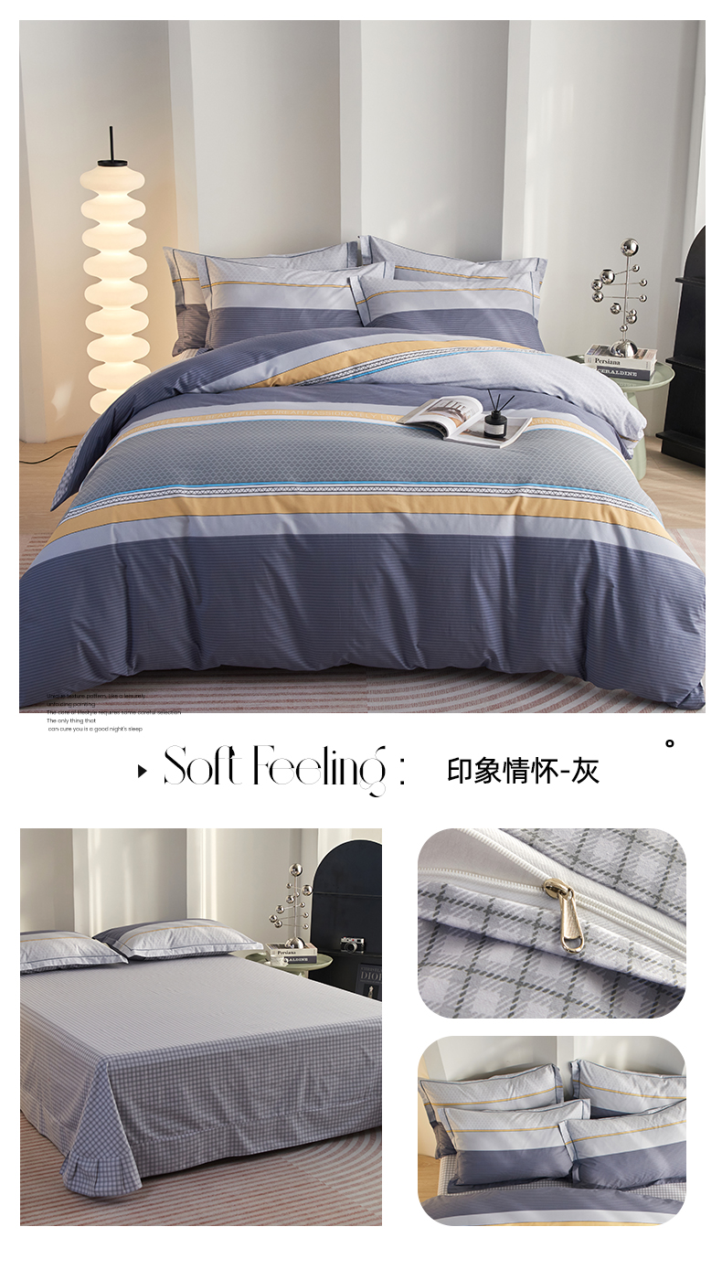 商品名称:金纱玉纺家纺 2025新款全棉13376数码印花四件套(礼盒包装) 印象情怀-灰