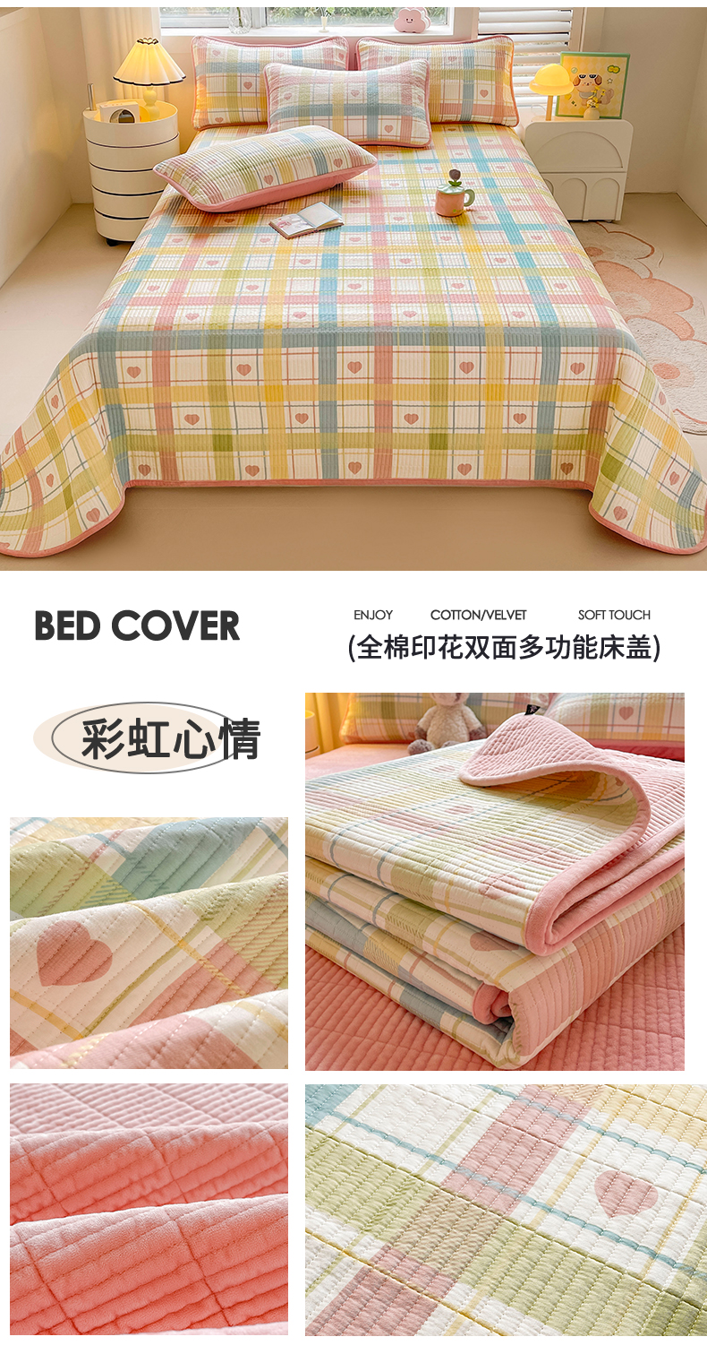 (总)柔品 2025新款全棉印花双面多功能床盖,爱丽丝,爱心格-绿,杯子喵,彩虹心情,都市生活,蝴蝶结格,罗马假日,蔓野玫瑰,阡陌大格,生如夏花,小南瓜,小熊女孩,郁见花开