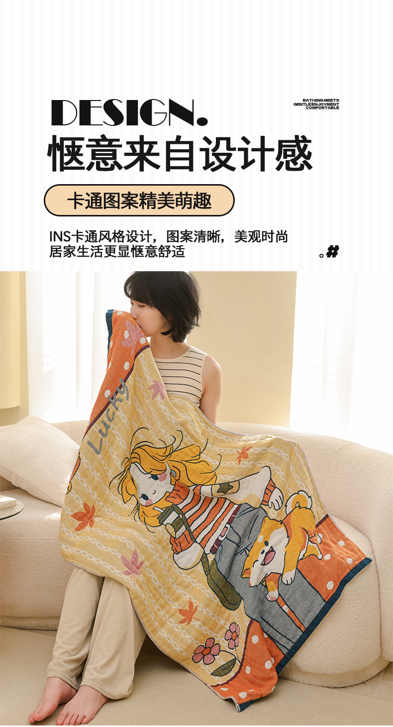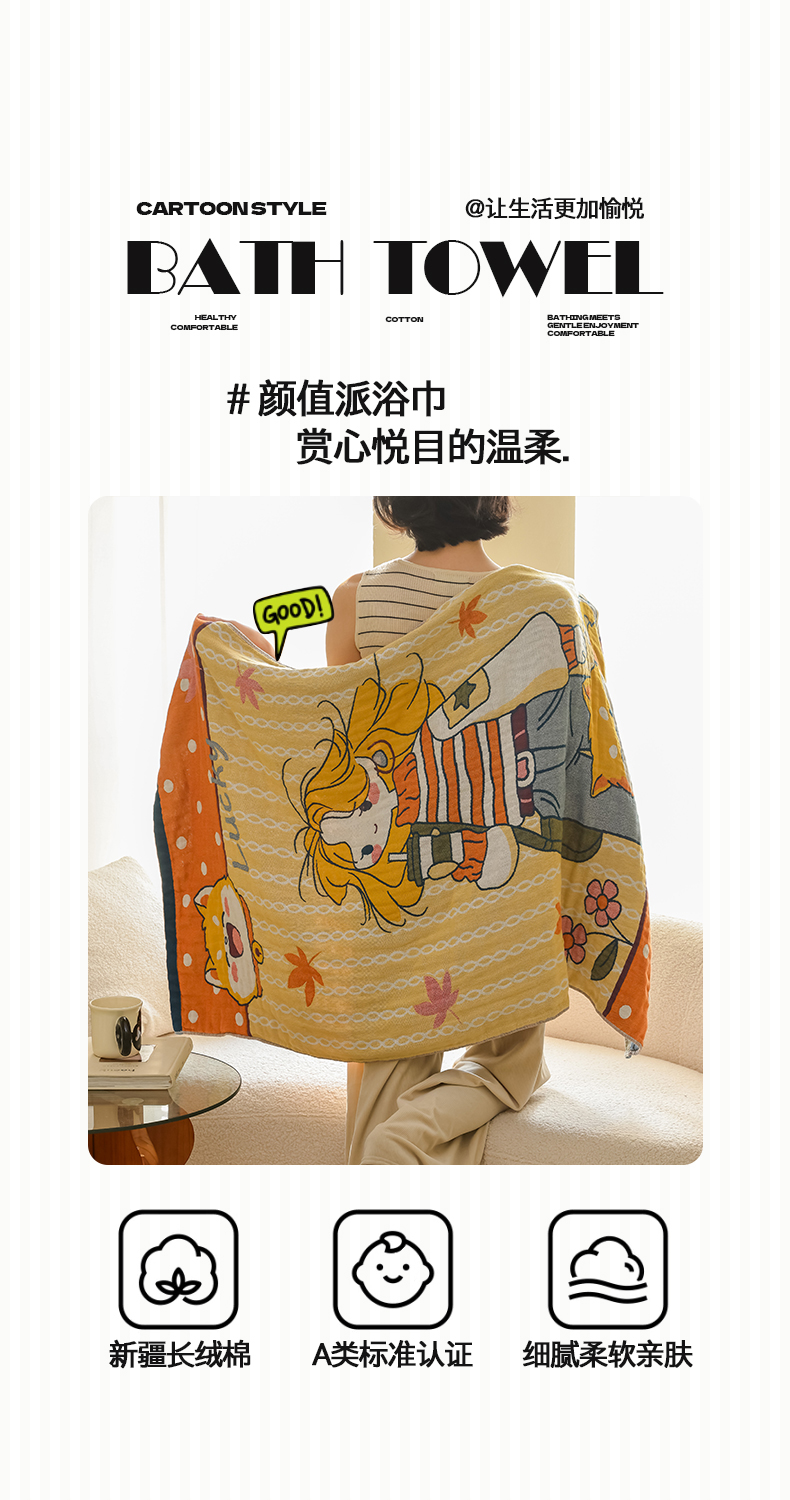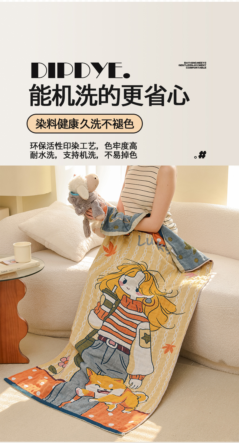 当前位置: 91家纺网 > 商品网购 > 居家日用 > 毛巾/浴巾/浴袍 > 浴巾 > 雯雨家纺 2025新款亲肤可爱全棉A类纱布浴巾 幸运女孩