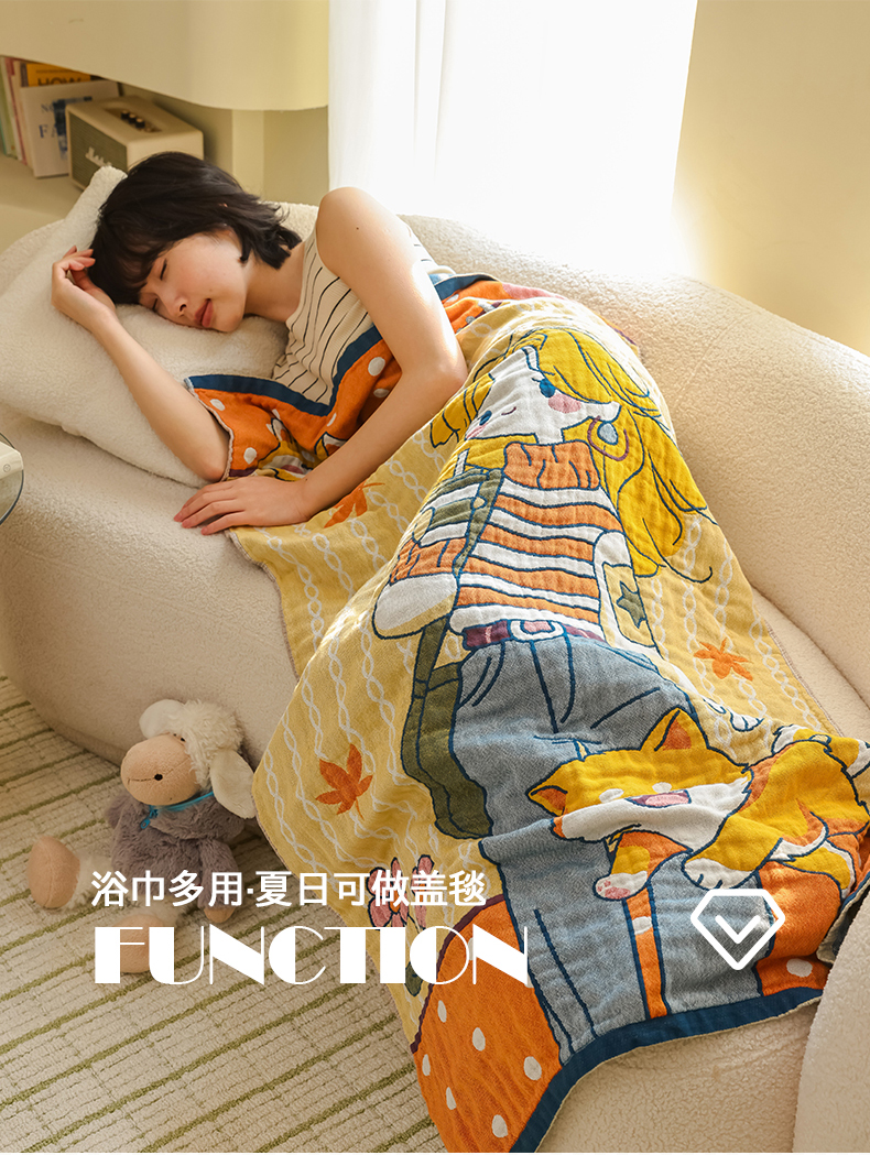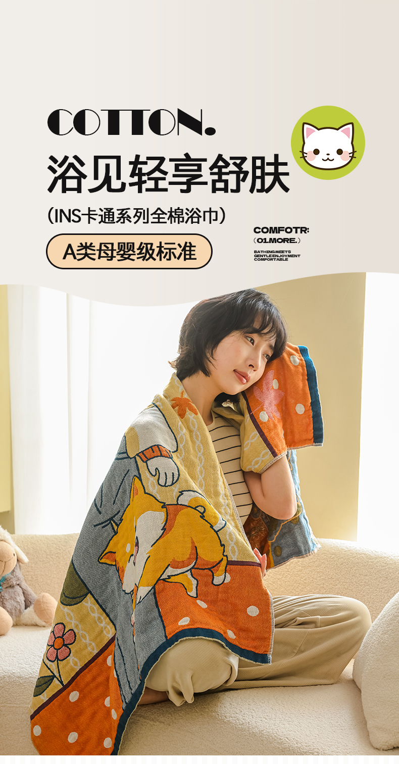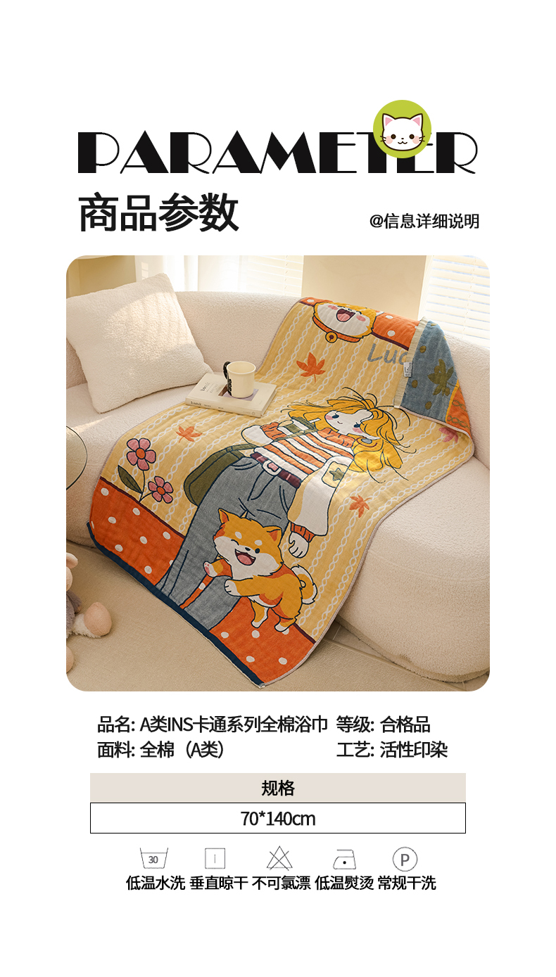 当前位置: 91家纺网 > 商品网购 > 居家日用 > 毛巾/浴巾/浴袍 > 浴巾 > 雯雨家纺 2025新款亲肤可爱全棉A类纱布浴巾 幸运女孩