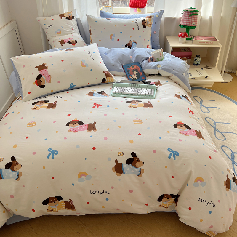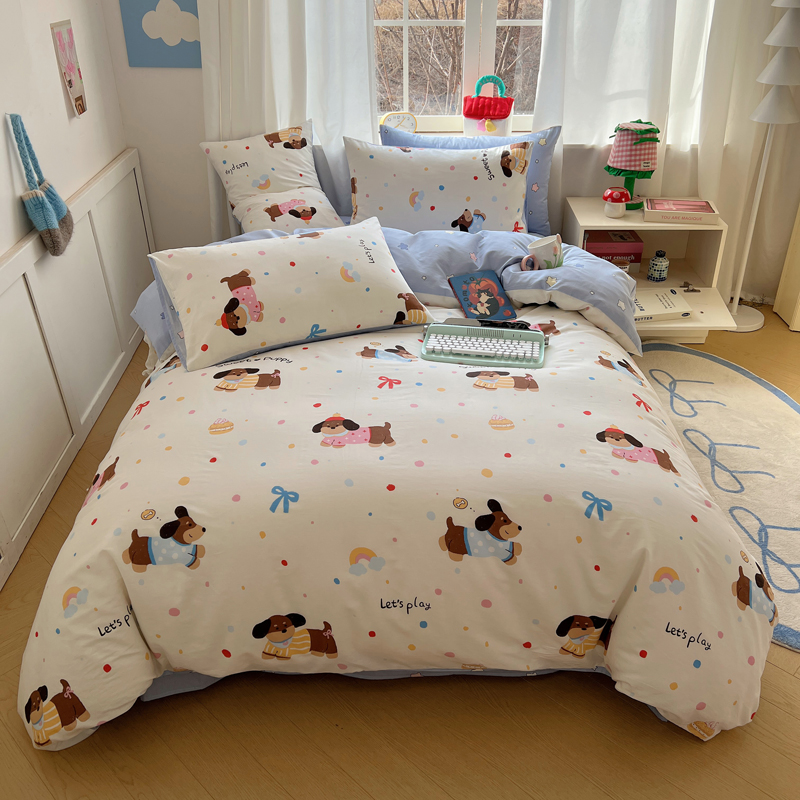 (总)桃喜 2024新款13372学生季全棉宿舍三件套,比熊小狗,波点动物园,波点西高地,狗狗家族,蝴蝶结小兔,蓝色小狗,喵星人,茉莉兔,潘多拉,晚安宝贝,小熊派对
