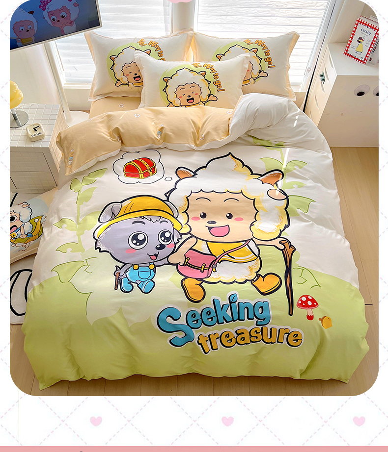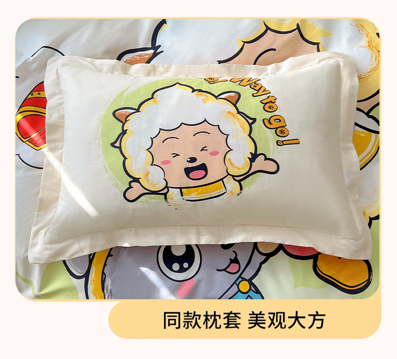 (总)浩诚 2025新款正版喜羊羊灰太狼全棉卡通大版印花四件套(全)-提供买家秀