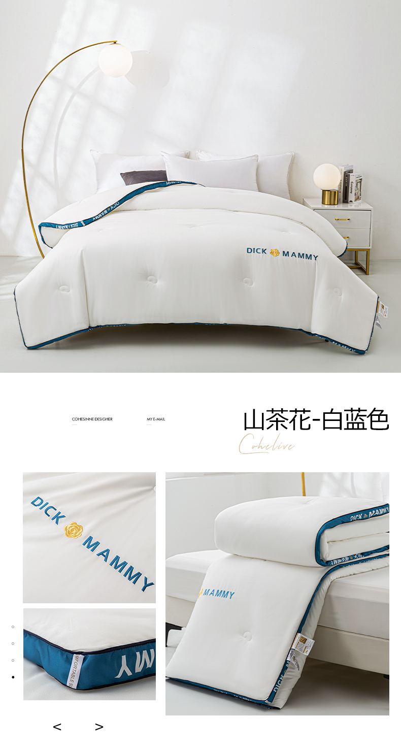 • 91家纺网 家纺一手货源 找家纺 (买家秀 热款花色不断货)A类母婴级大豆被立体边刺绣春秋冬被大豆纤维被空调被纯色被子大豆被芯-场景2 山茶花-白蓝色