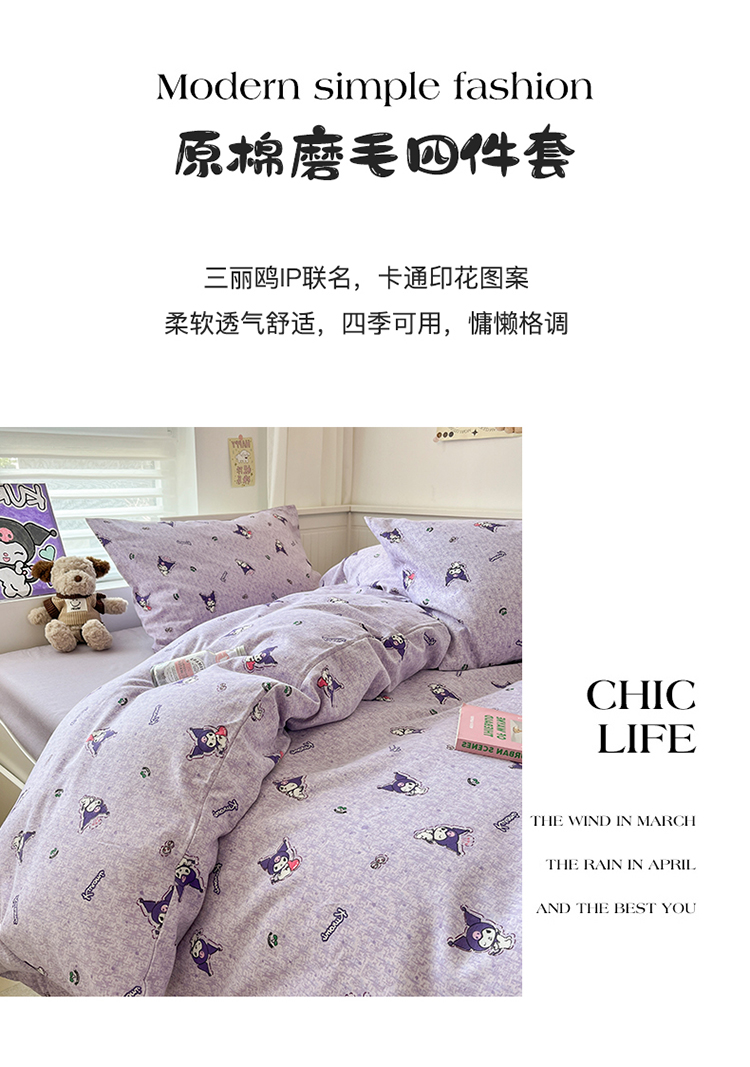 当前位置: 91家纺网 > 商品网购 > 床品套件 > 四件套 > 全棉普通四件套 > (买家秀 爆款花色不断货)A类母婴级纯棉磨毛四件套简约纯棉全棉磨毛四件套三丽鸥磨毛四件套纯棉全棉原棉 小小库洛米