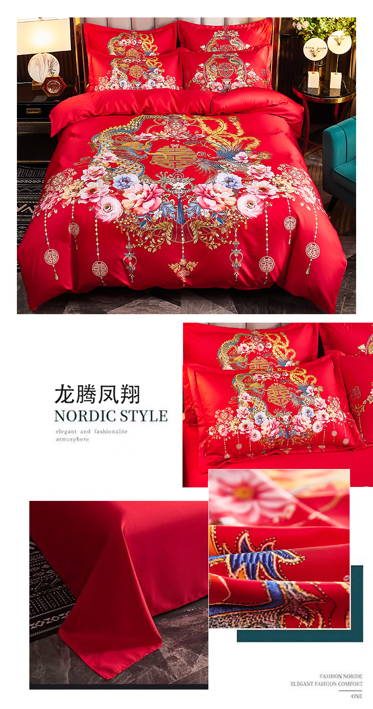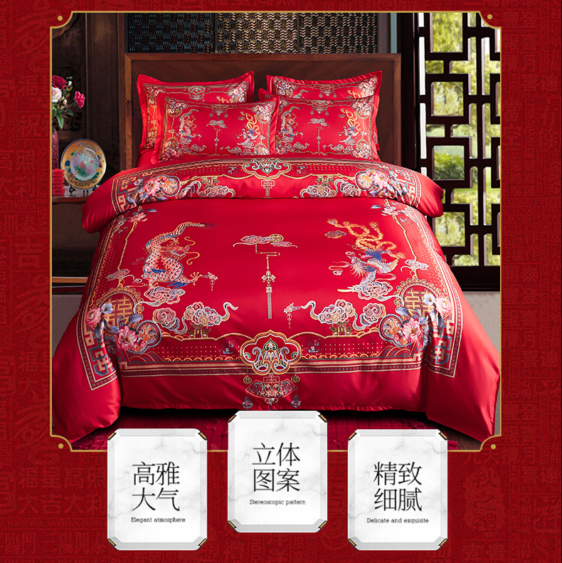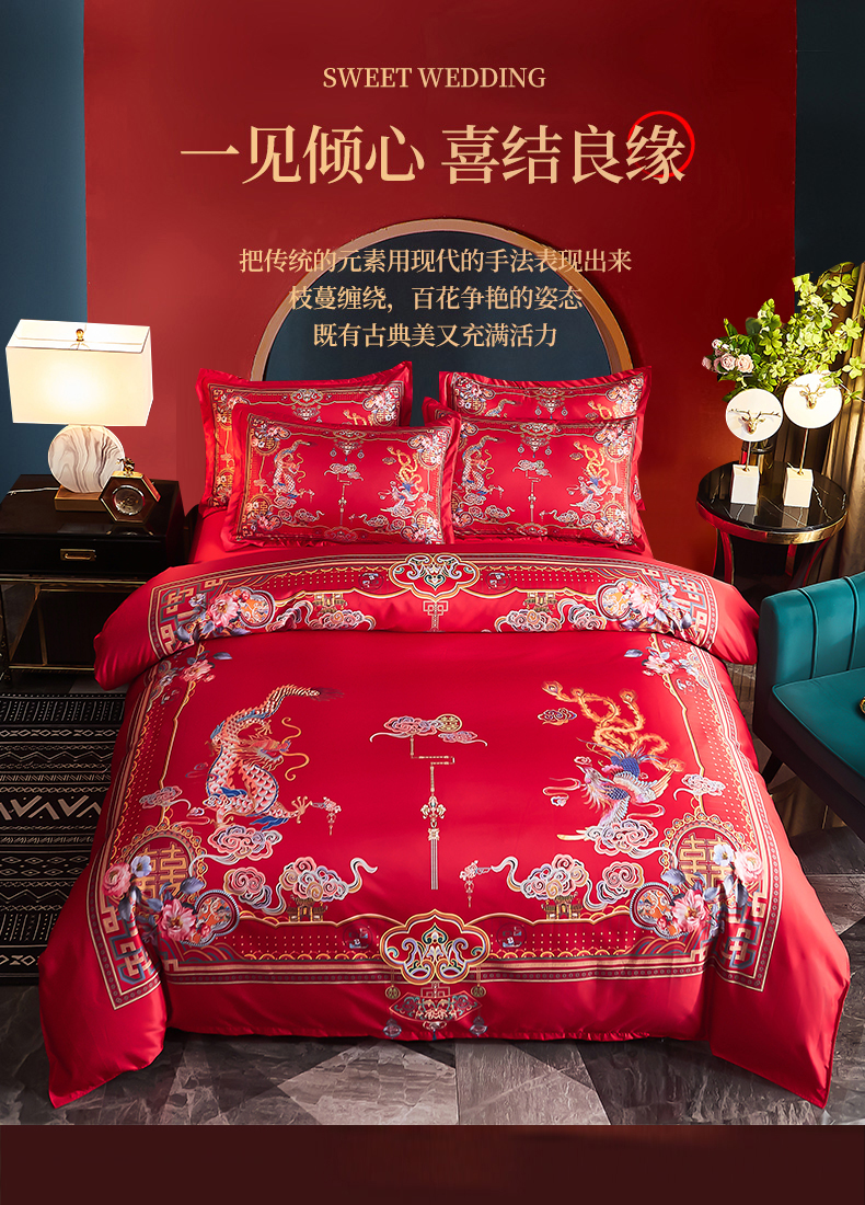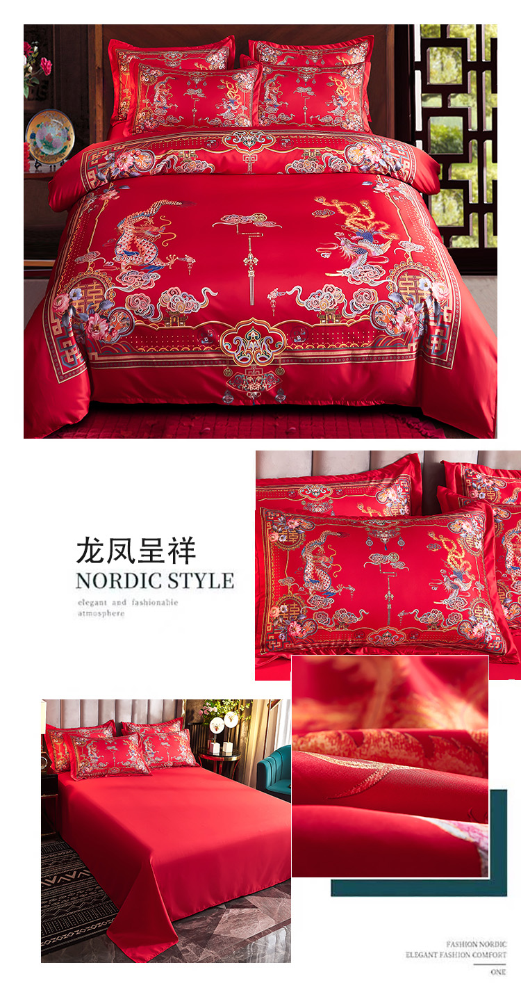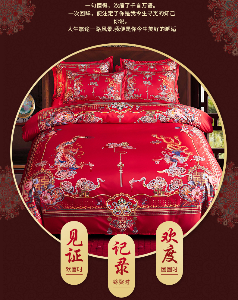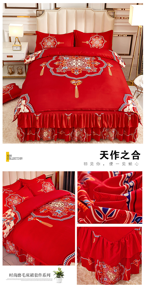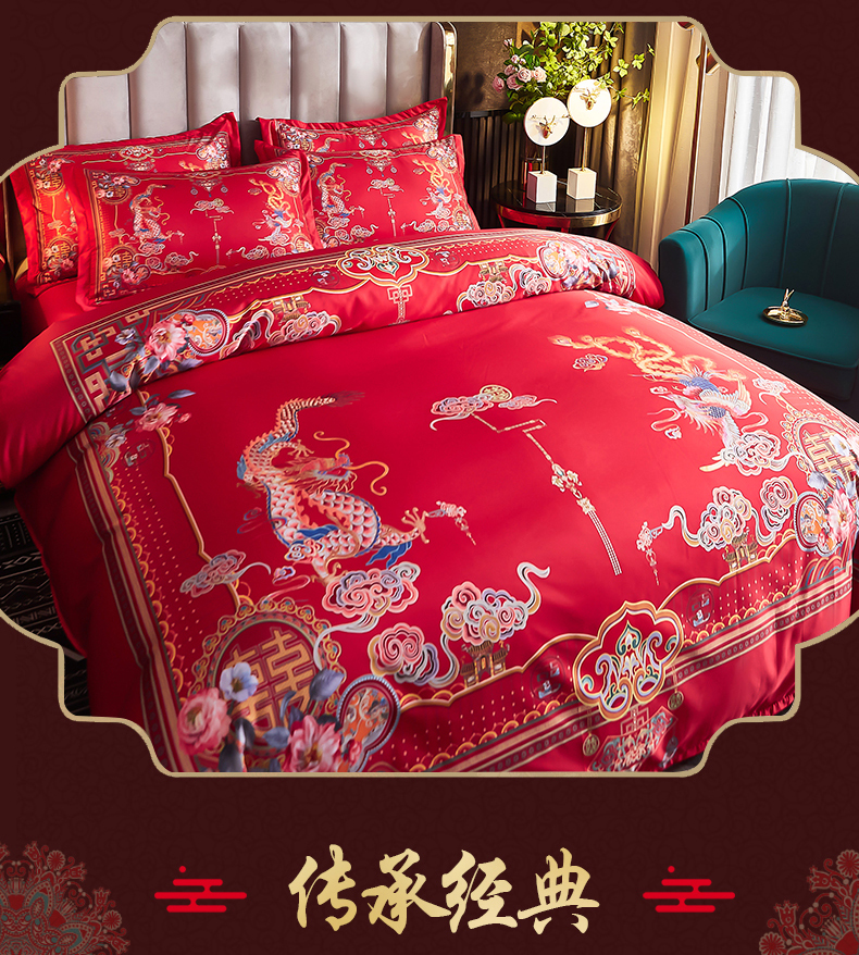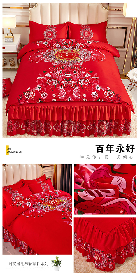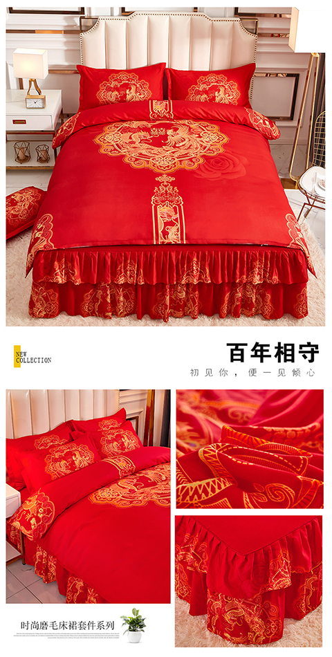 (总)(买家秀 爆款花型不断货)中式婚庆四件套红色四件套结婚四件套喜庆四件套婚嫁四件套新婚四件套床裙四件套