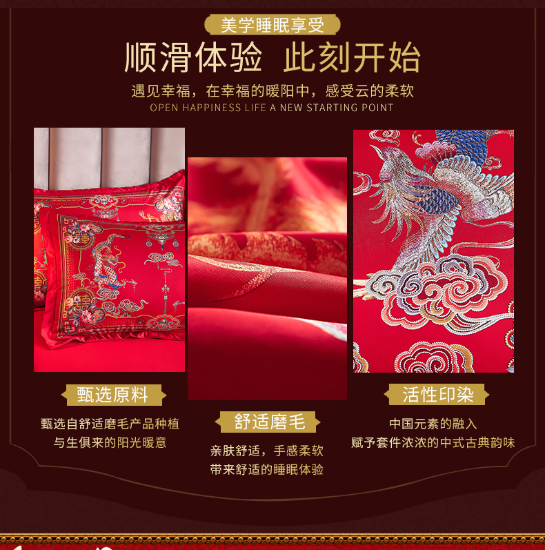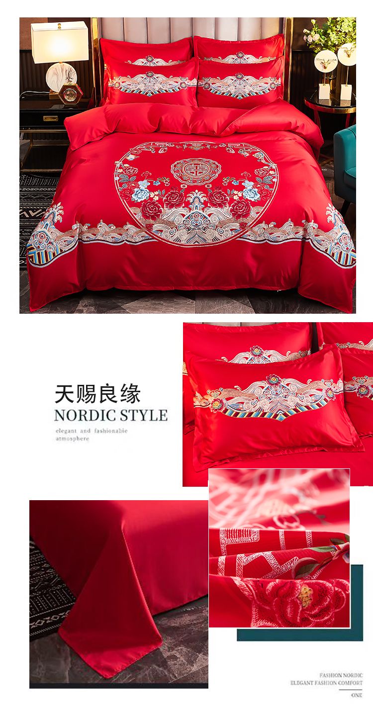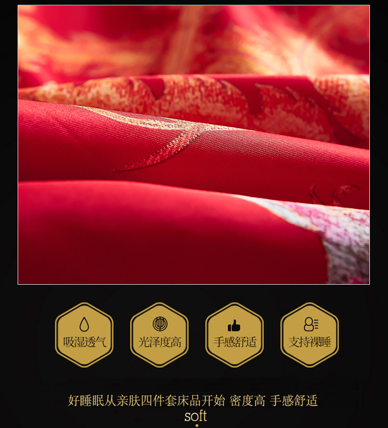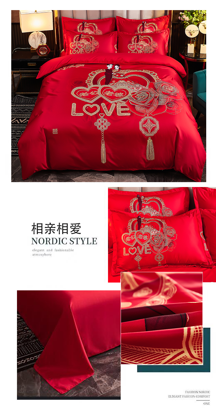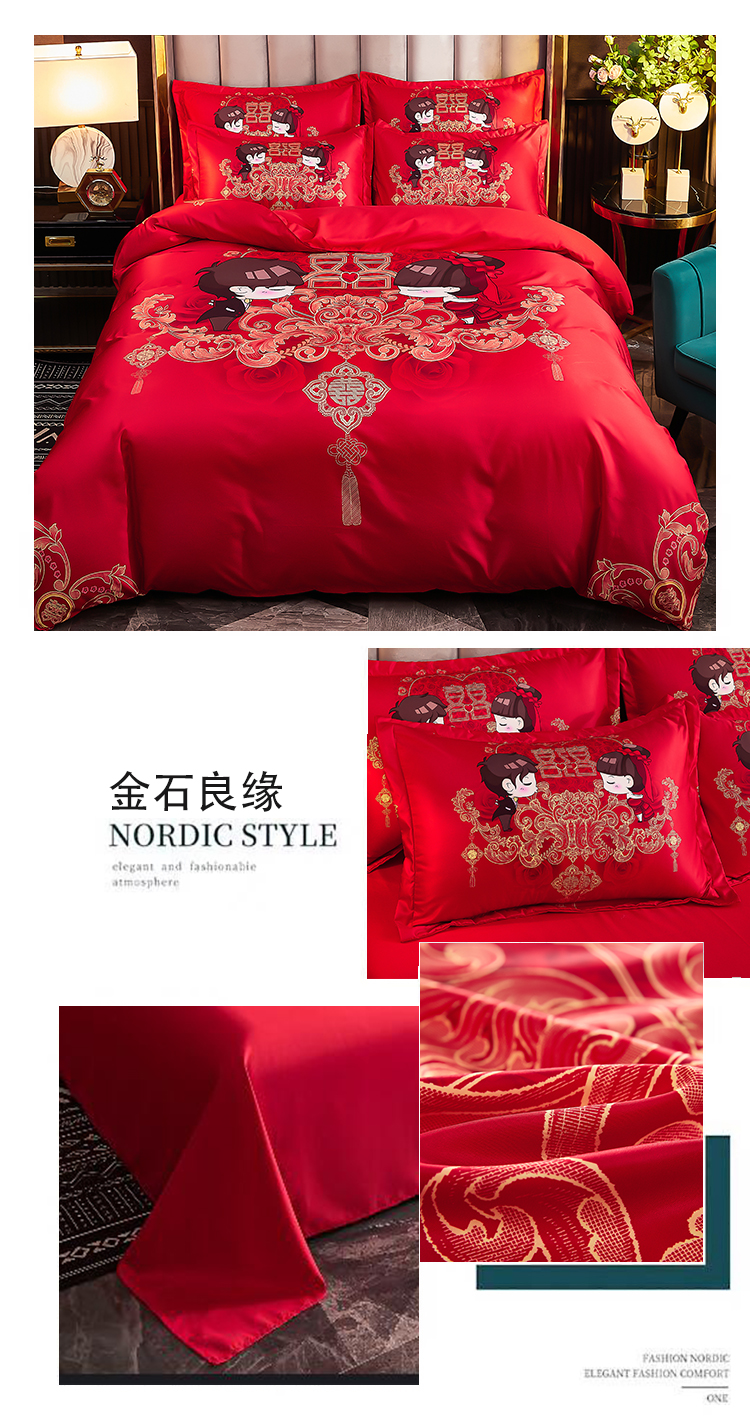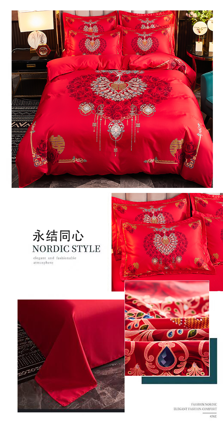 (总)(买家秀 爆款花型不断货)中式婚庆四件套红色四件套结婚四件套喜庆四件套婚嫁四件套新婚四件套床裙四件套