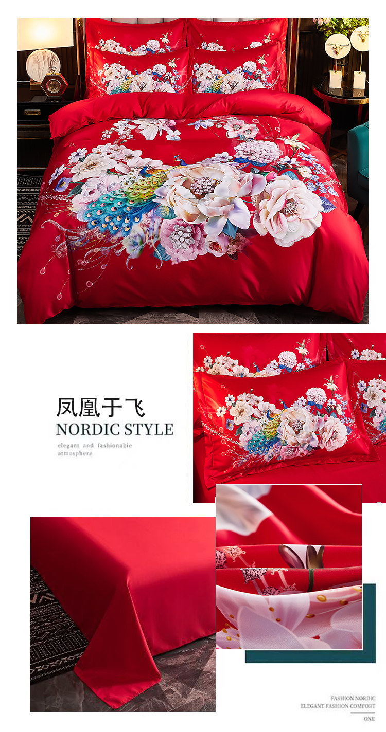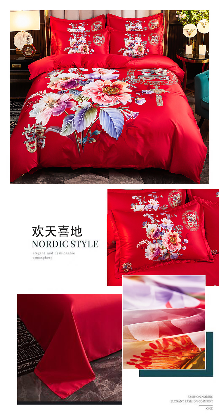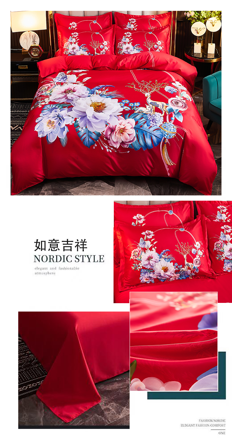 商品名称:(总)(买家秀 爆款花型不断货)中式婚庆四件套红色四件套结婚四件套喜庆四件套婚嫁四件套新婚四件套床裙四件套