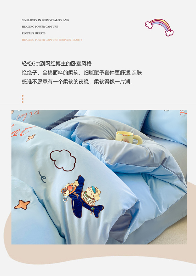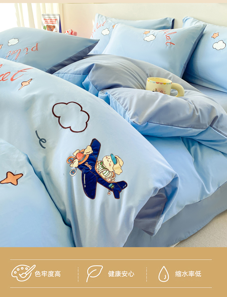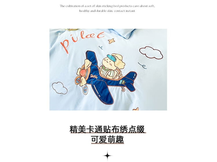 商品名称:(买家秀)(爆款花型长期款不断货)A类全棉贴布绣四件套绣花四件套毛巾绣四件套毛巾绣三件套卡通 飞行熊