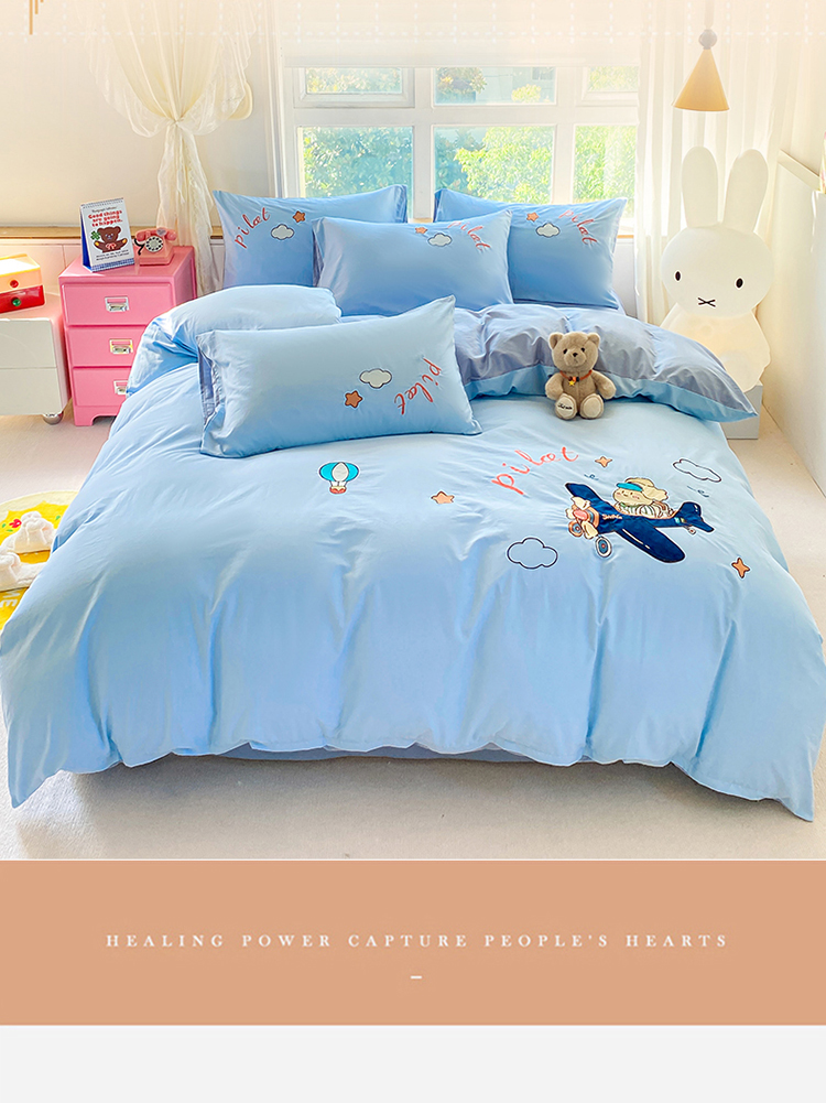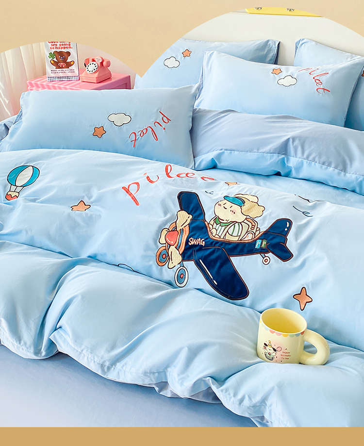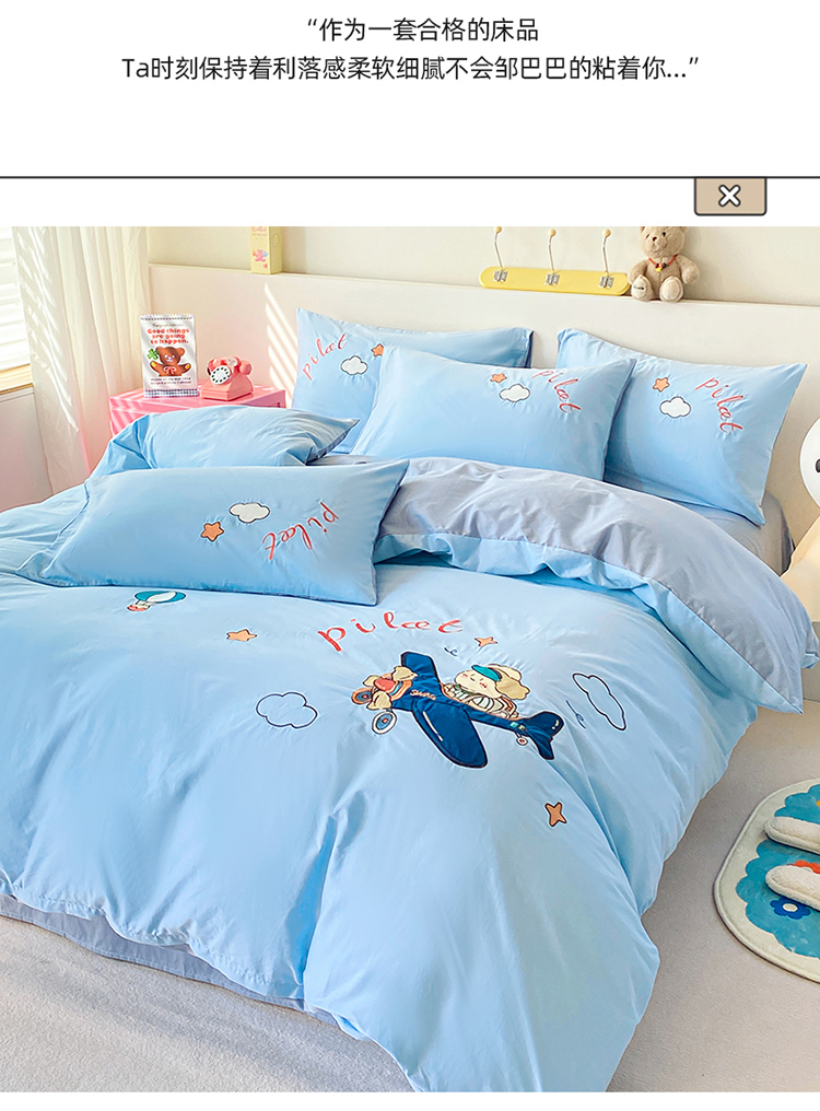 (买家秀)(爆款花型长期款不断货)A类全棉贴布绣四件套绣花四件套毛巾绣四件套毛巾绣三件套卡通 飞行熊