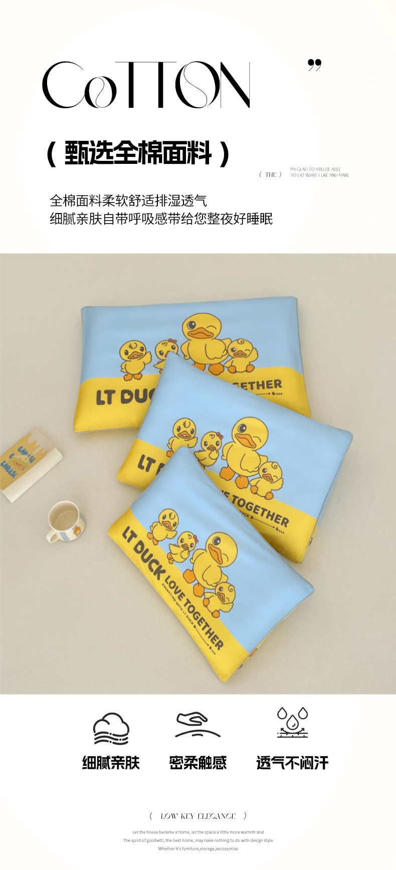 • 91家纺网 家纺一手货源 找家纺 梦舒羽 2025新款正版授权全棉枕套卡通枕芯套枕头内胆套儿童抱枕套 调皮鸭