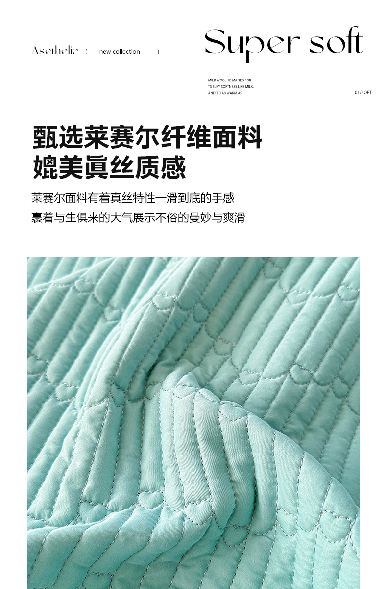 源舜家纺 2025新款莱赛尔床盖三件套 绿色