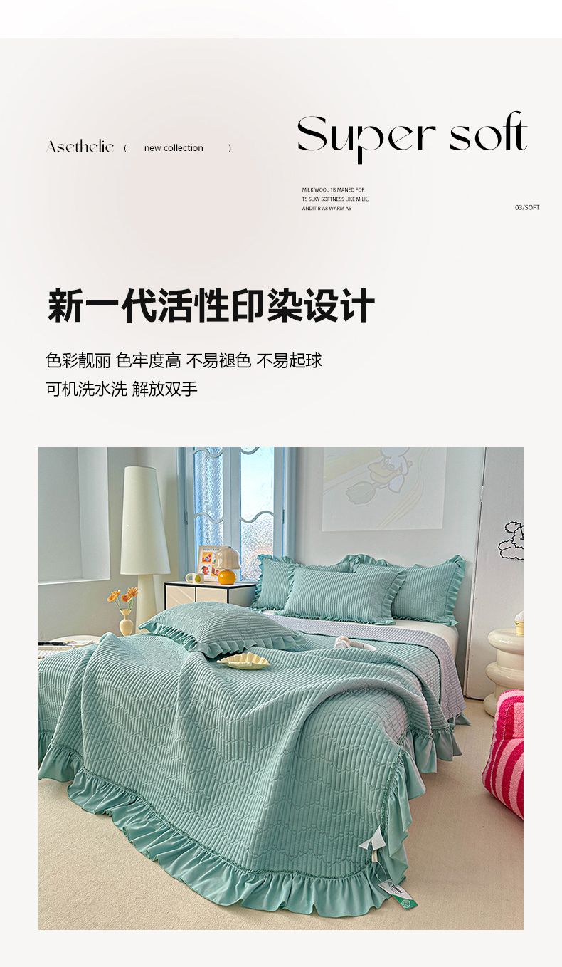 (总)源舜家纺 2025新款牛奶婴儿绒米粒绣韩系花边床盖三件套,婴儿草绿,婴儿豆沙,婴儿粉,婴儿灰,婴儿灰蓝,婴儿蓝,婴儿深绿,婴儿紫
