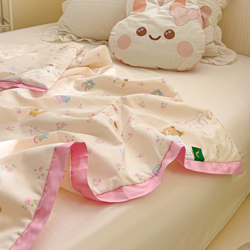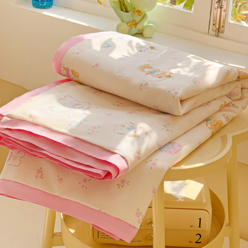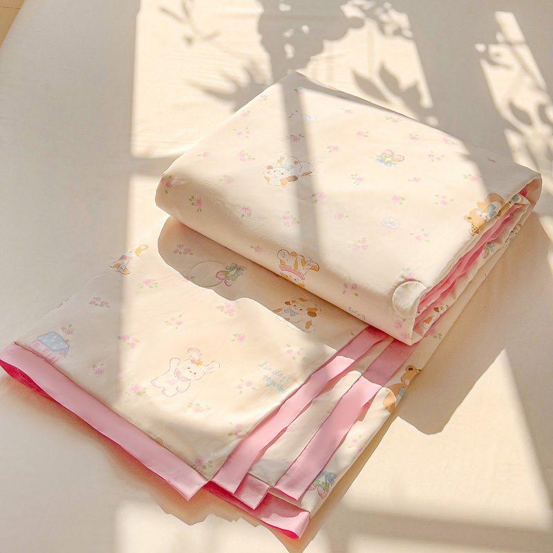 十九色 2025新款液态硅胶飞边凉感奶嘴同源硅胶微重力贴身凉爽儿童夏被 田园趣事