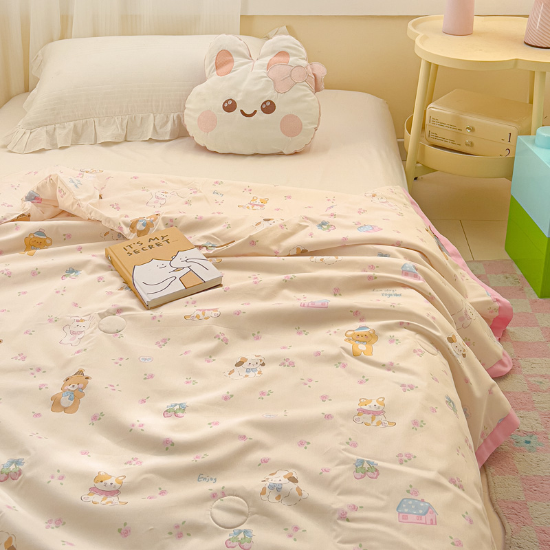 商品名称:十九色 2025新款液态硅胶飞边凉感奶嘴同源硅胶微重力贴身凉爽儿童夏被 田园趣事