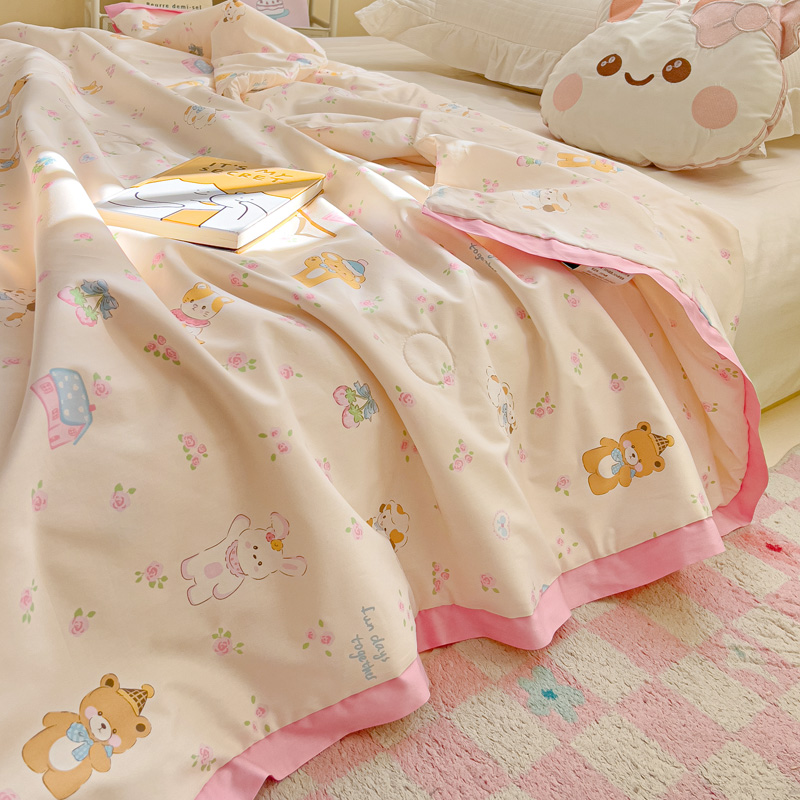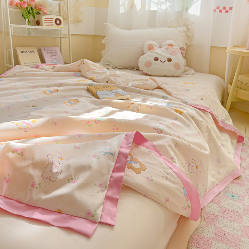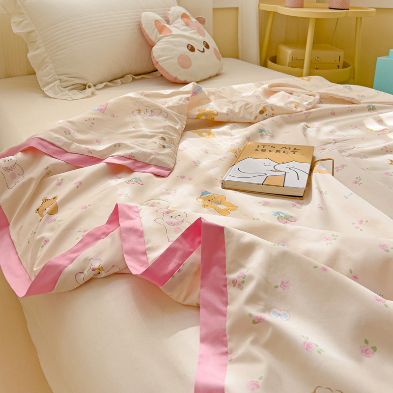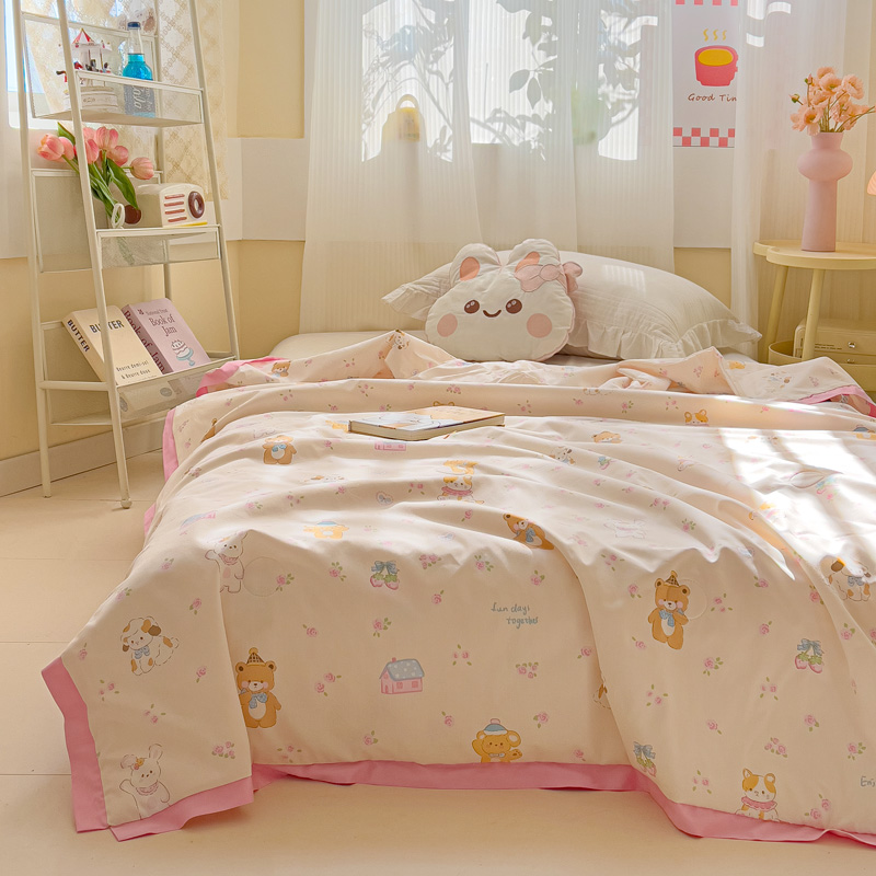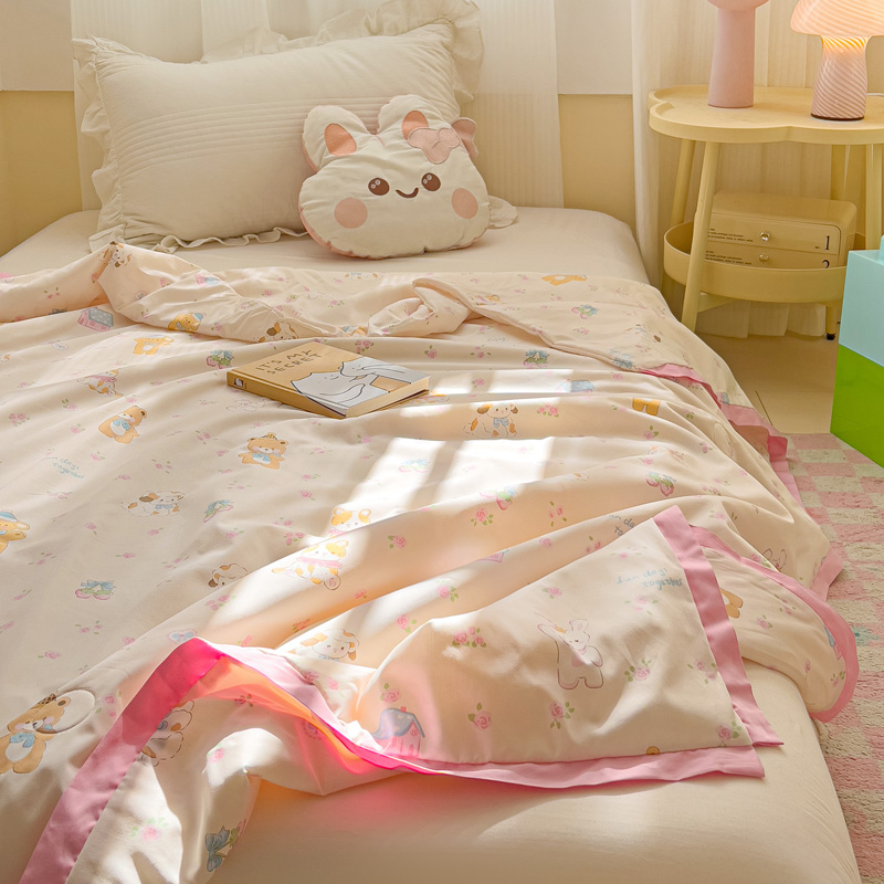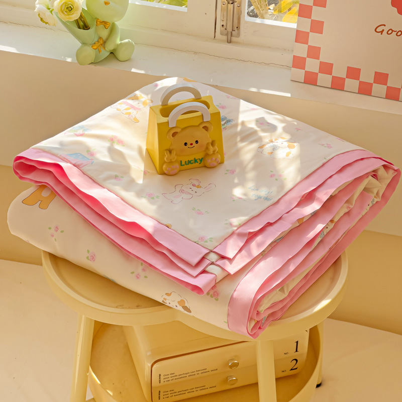 (总)十九色 2024新款华夫格纱全棉儿童夏凉被双层纱空调被,兔公主粉,相识,小马粉,小树林,小熊蓝,遇见,长颈鹿,草莓派,聪明鸭