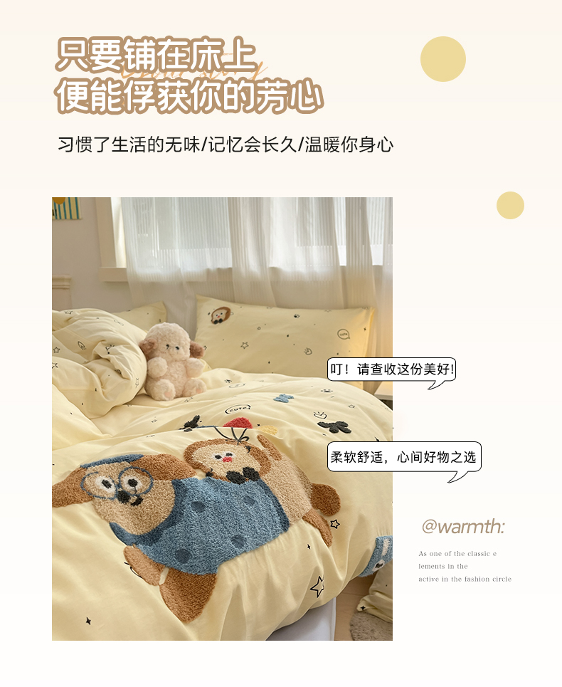 (总)寐居家纺 2025新款毛球毛巾绣牛奶绒四件套,毛球球·巴克汪仔,毛球球·豆蔻女孩,毛球球·奶黄拉布,毛球球·心动KT喵,组合图仅供展示不可下单