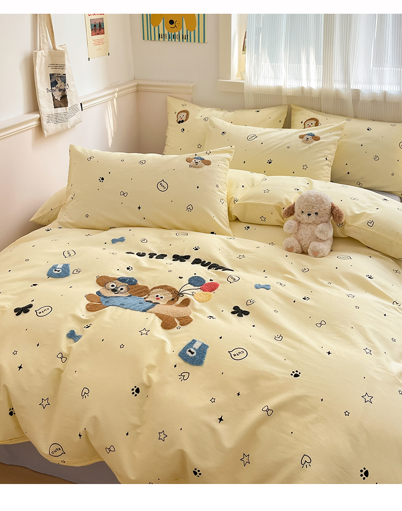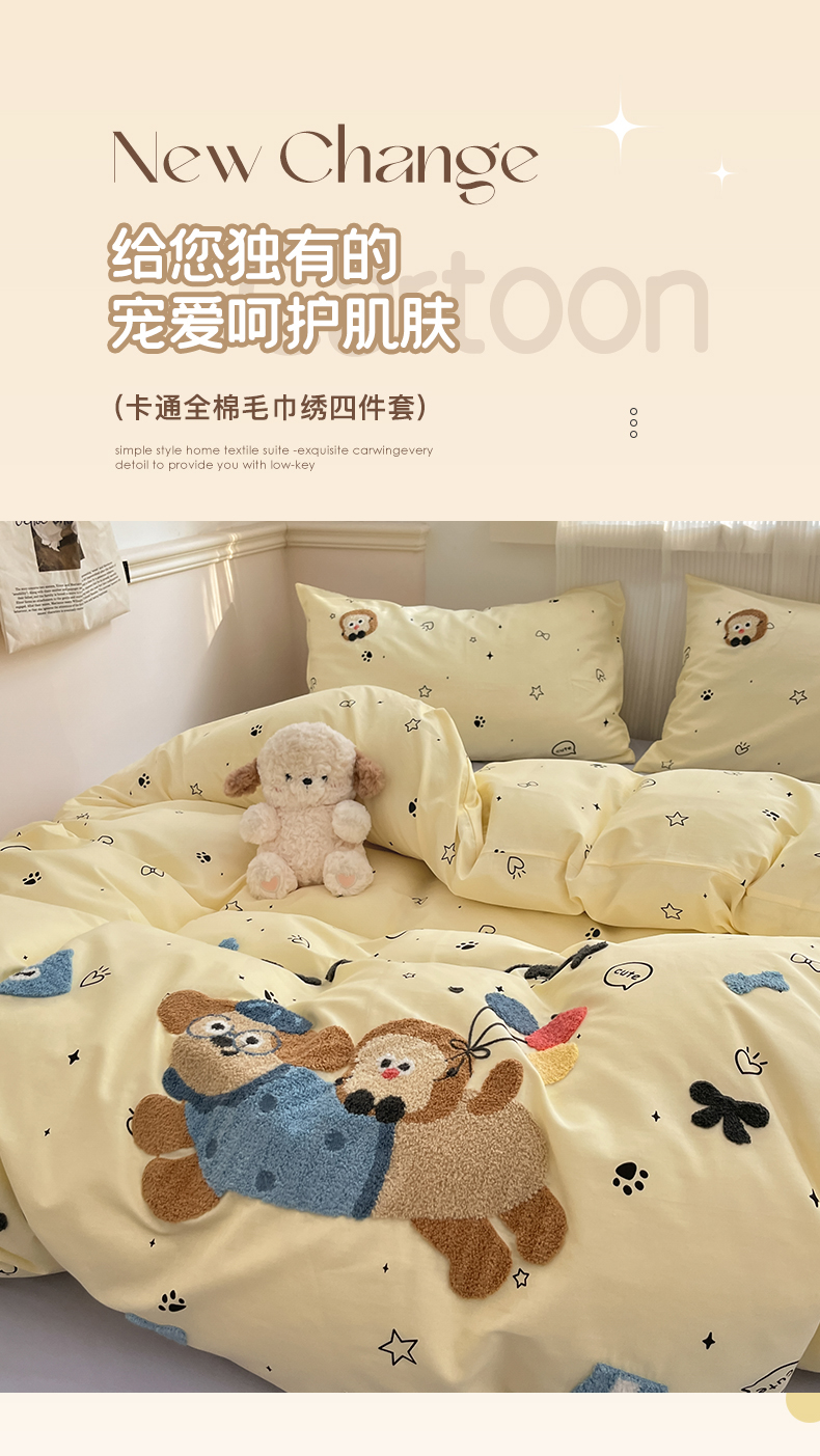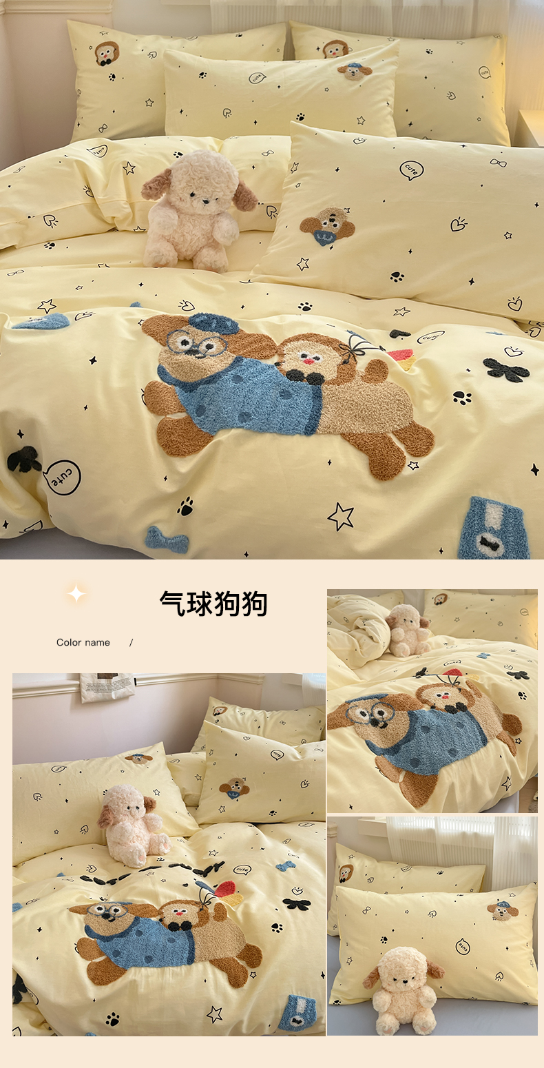 商品名称:寐居家纺 2025新款全棉13070毛巾绣四件套 气球狗狗