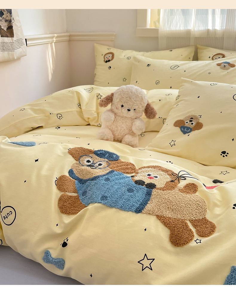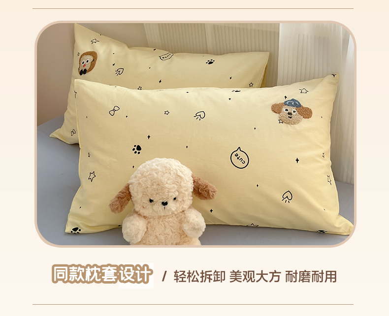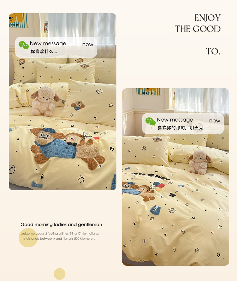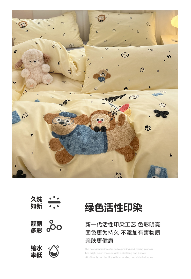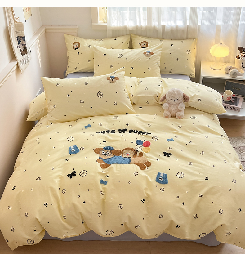商品名称:寐居家纺 2025新款全棉13070毛巾绣四件套 气球狗狗
