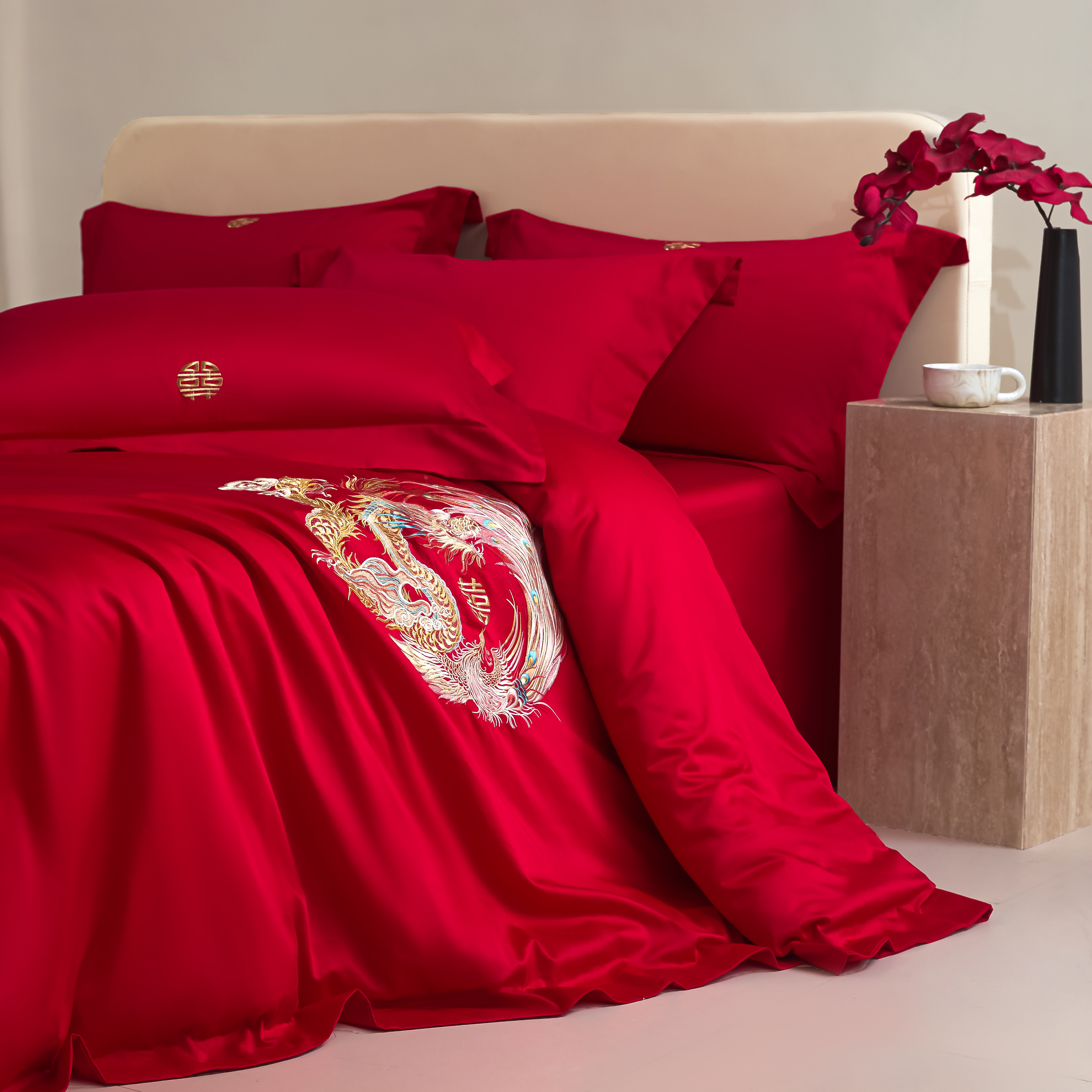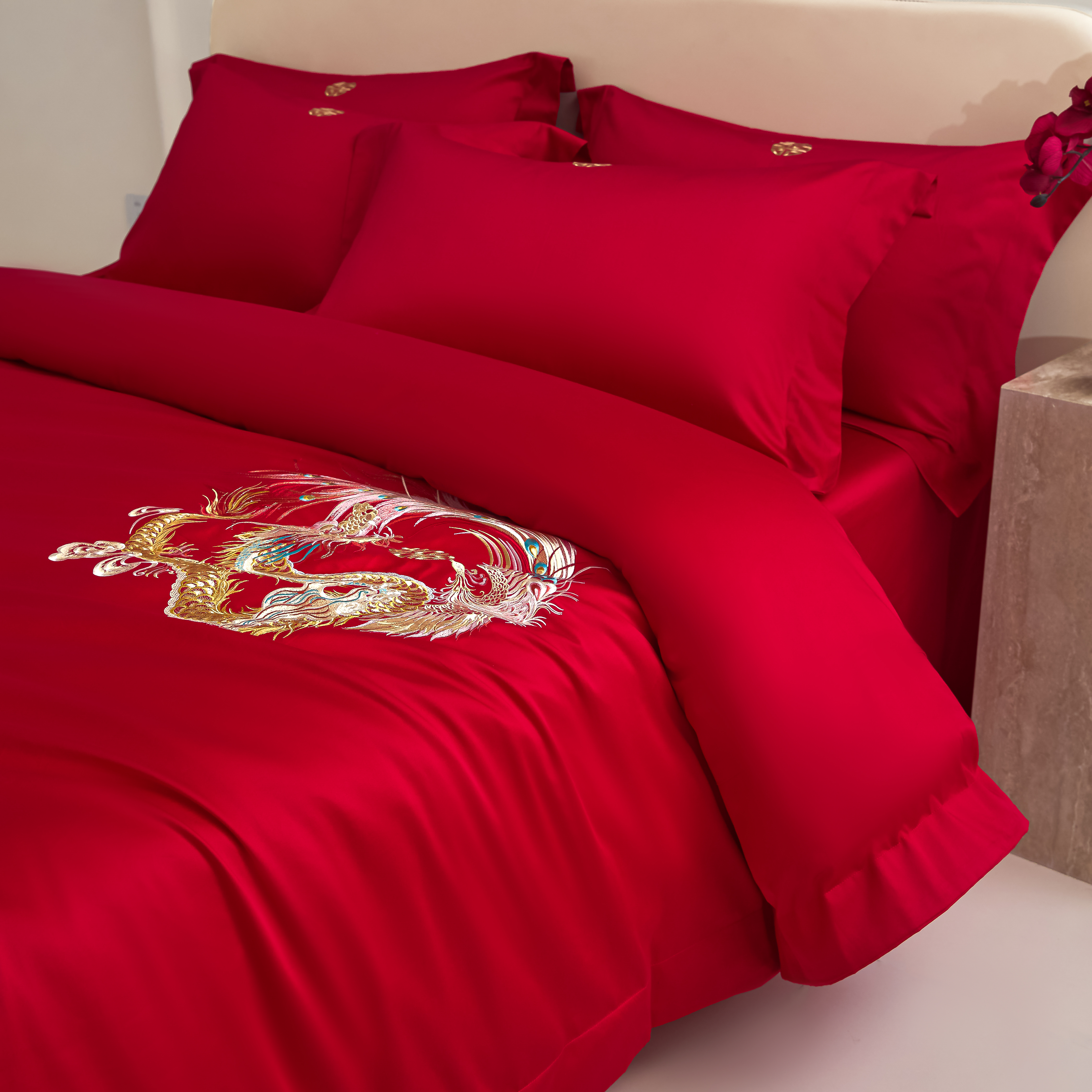 商品名称:(总)秀色家纺 2025新款高档100支新疆长绒棉婚庆四件套纯棉喜被全棉大红色结婚床单被套-龙凤呈祥