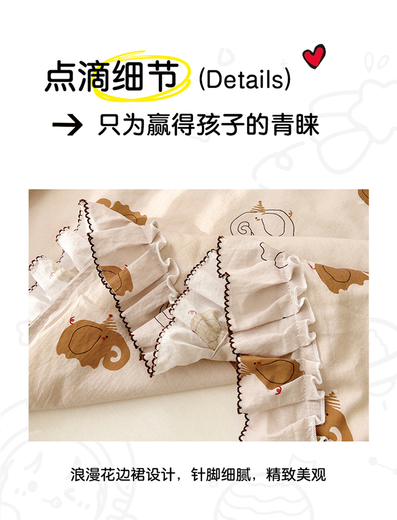 (总)御棉坊 2025新款7A抗菌系列40支印花幼儿园儿童套件,荷叶小象,恐龙部落,蘑菇森林,气球云旅,松鼠与独角兽,熊猫马戏团