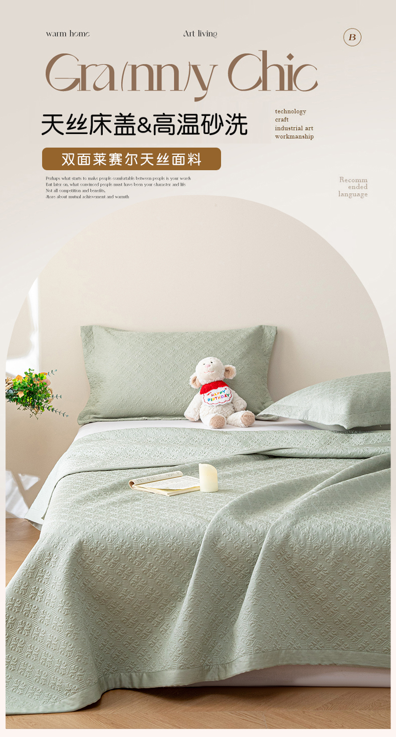 商品名称:(总)漫时光 2025春夏新款纯色双面莱赛尔天丝砂洗床盖三件套