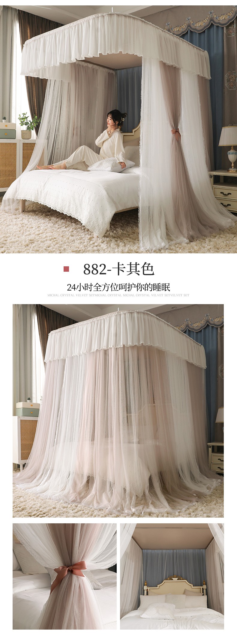 (总)夏彩 2025新款豪华宫廷蕾丝睡帐-88599,88599-公主白,88599-公主粉,88599-公主玉,88599-蓝灰色