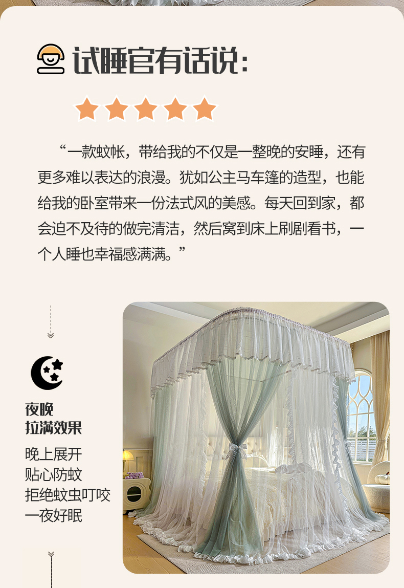 (总)夏彩 2025新款浪漫唯美T+U床笠式坐床外穿防摔蚊帐-88610,886610冰海蓝,886610极光白,886610浅粉玉,886610浅水蓝,886610蔷薇粉,886610杏仁黄,886610雅士灰