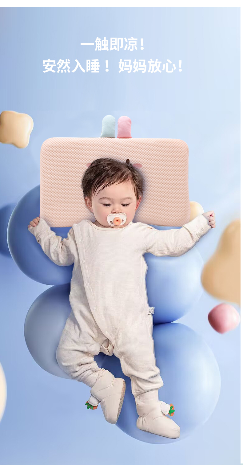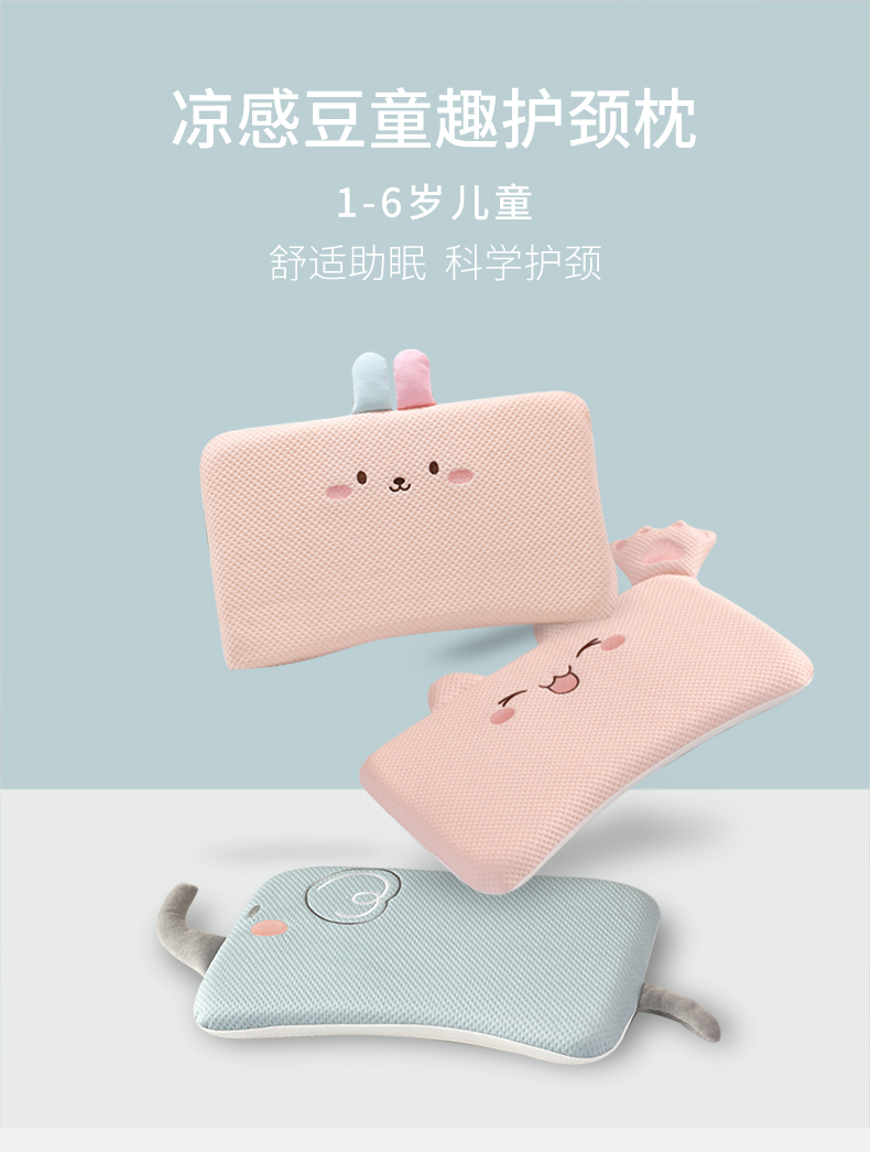 小猫派2025新款凉感豆童趣护颈枕头枕芯-八字 小八字绿色恐龙