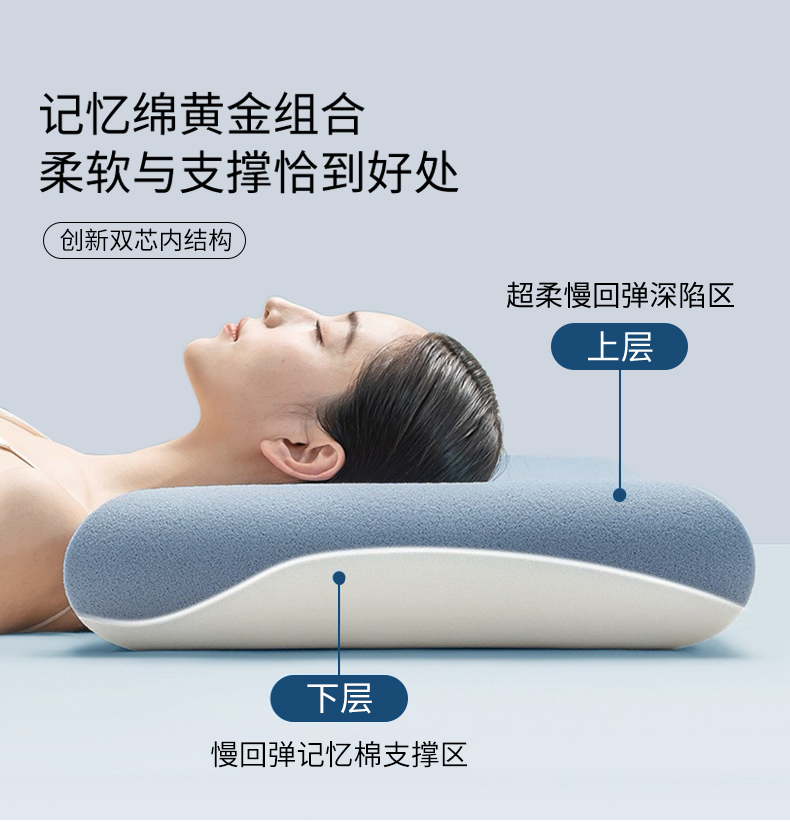 (总)蔻眠 【2代升级三芯】零压慢回弹护颈枕头双芯三芯记忆棉枕芯