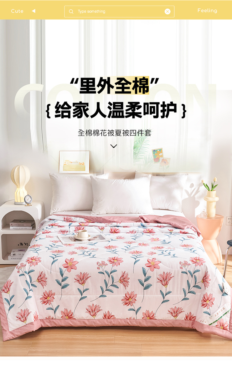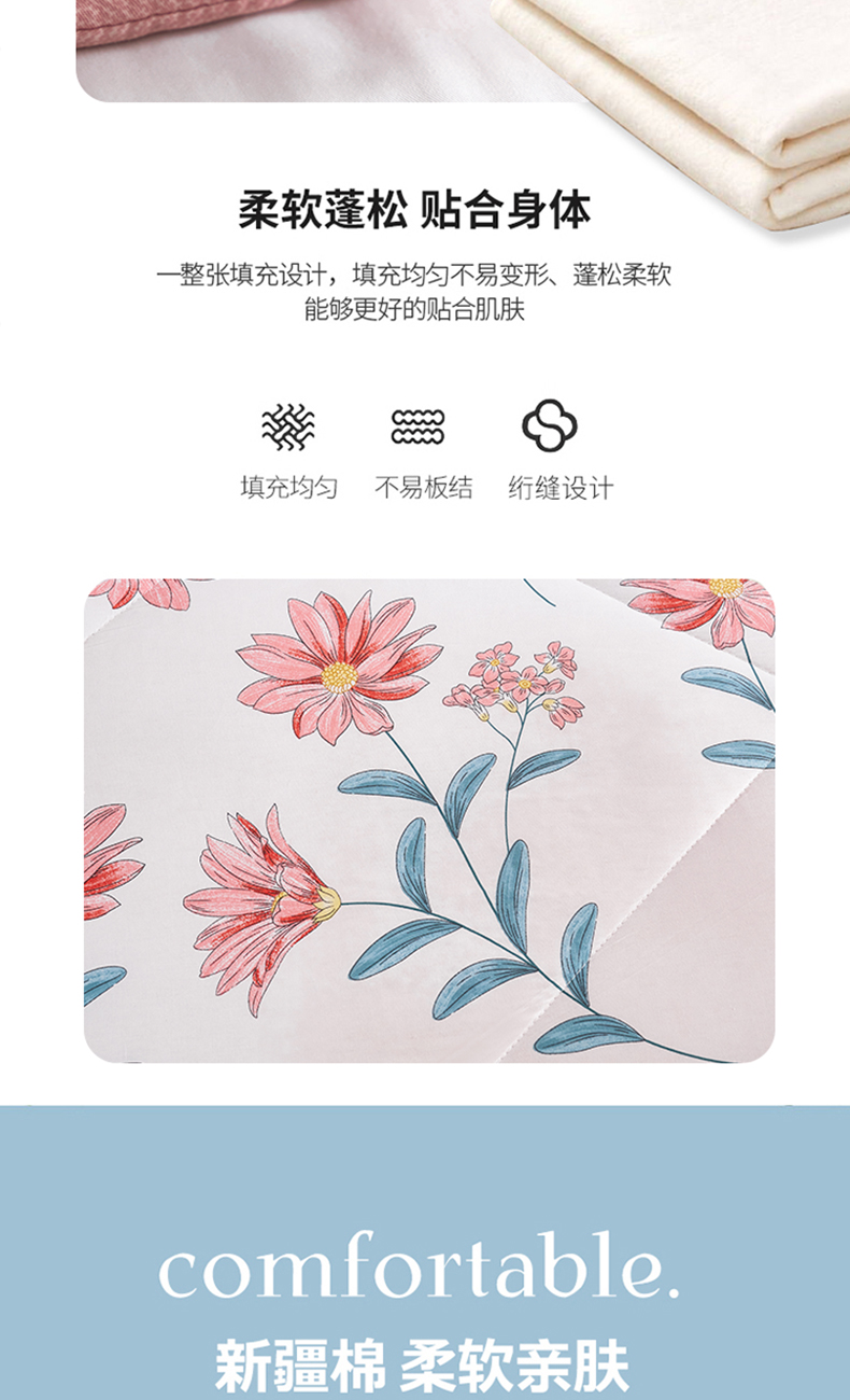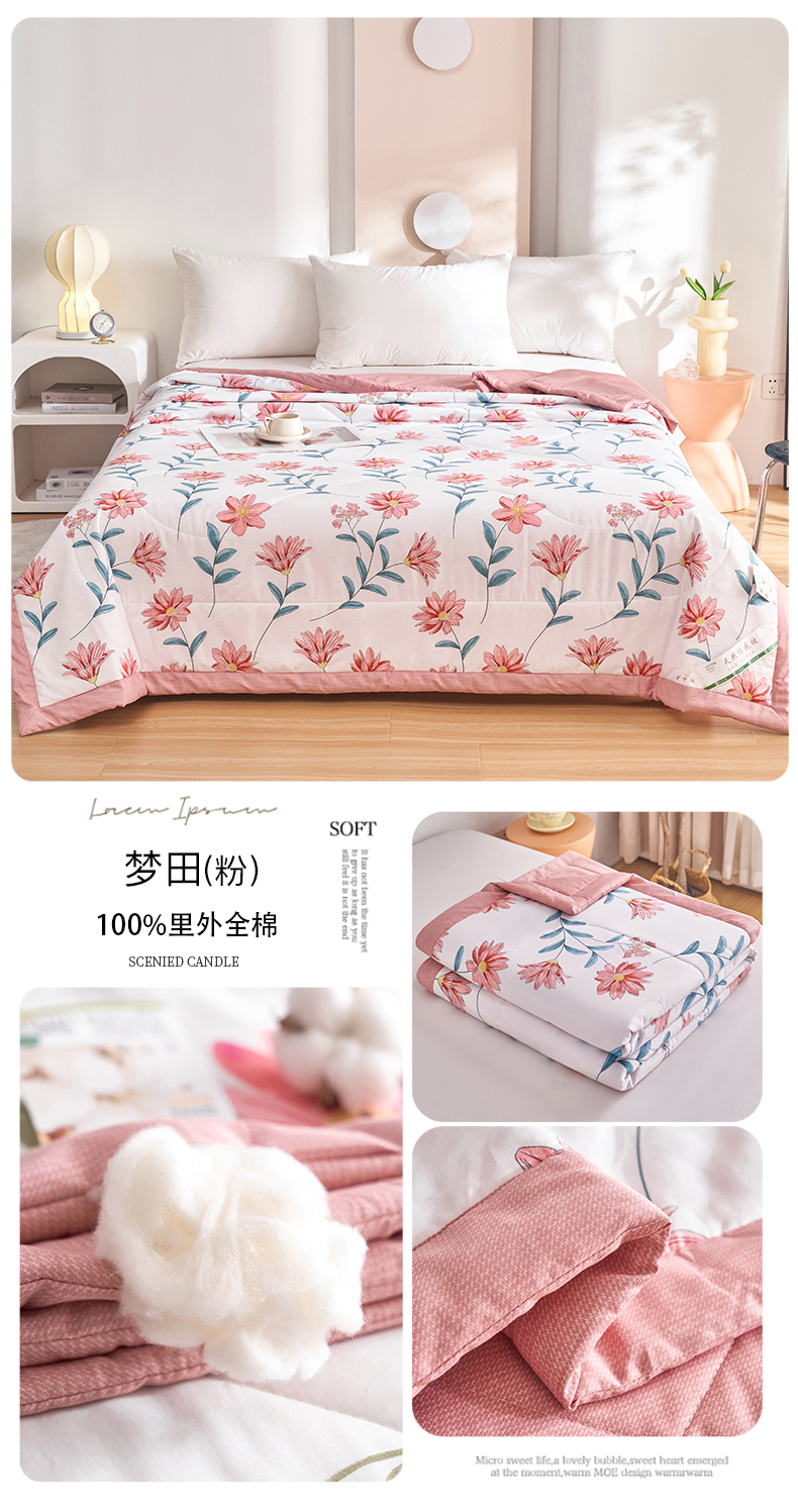 商品名称:羽梦家纺 2025新款新疆棉花全棉夏凉被被子被芯 梦田粉