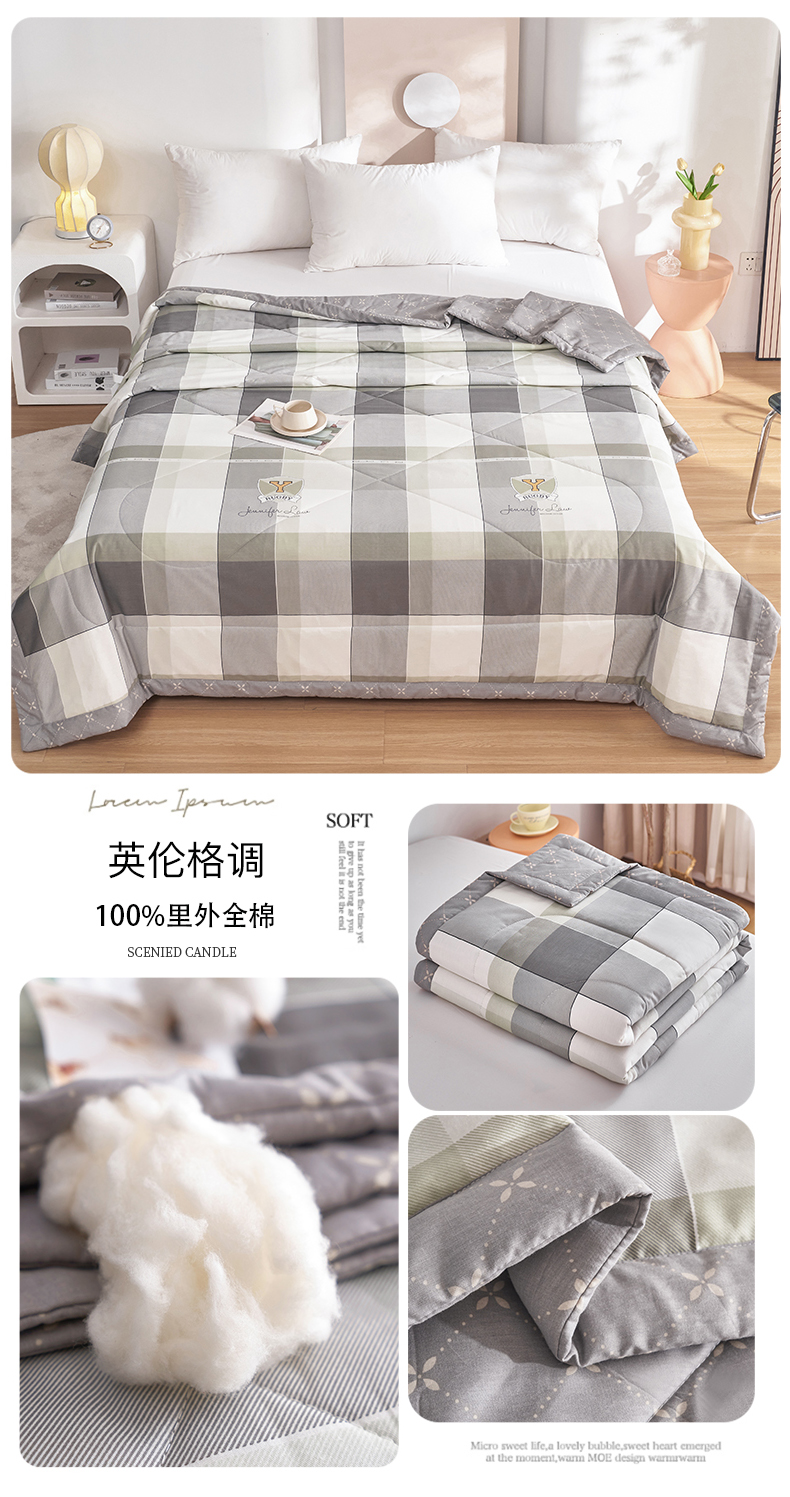 羽梦家纺 2025新款新疆棉花全棉夏凉被被子被芯 英伦格调