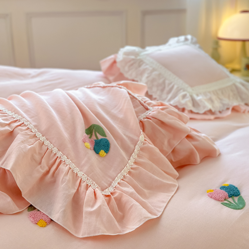 淑女公社 韩版纯棉床裙款四件套-微微公主系列 粉色,粉红色