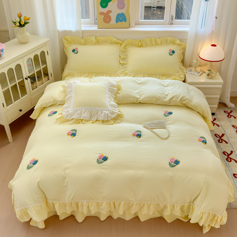 (总)淑女公社家纺 2025春夏新款全棉人字纹毛巾绣床盖款四件套-郁金香
