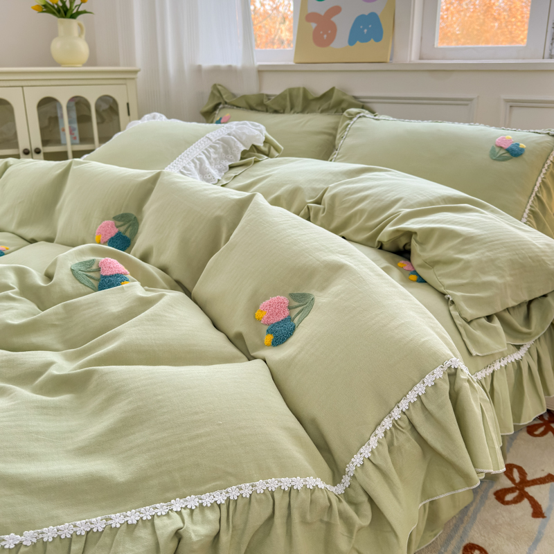 (总)淑女公社 2022新款全棉四件套纯棉少女心事系列直播,初恋粉,奶油黄,春天绿,海洋蓝