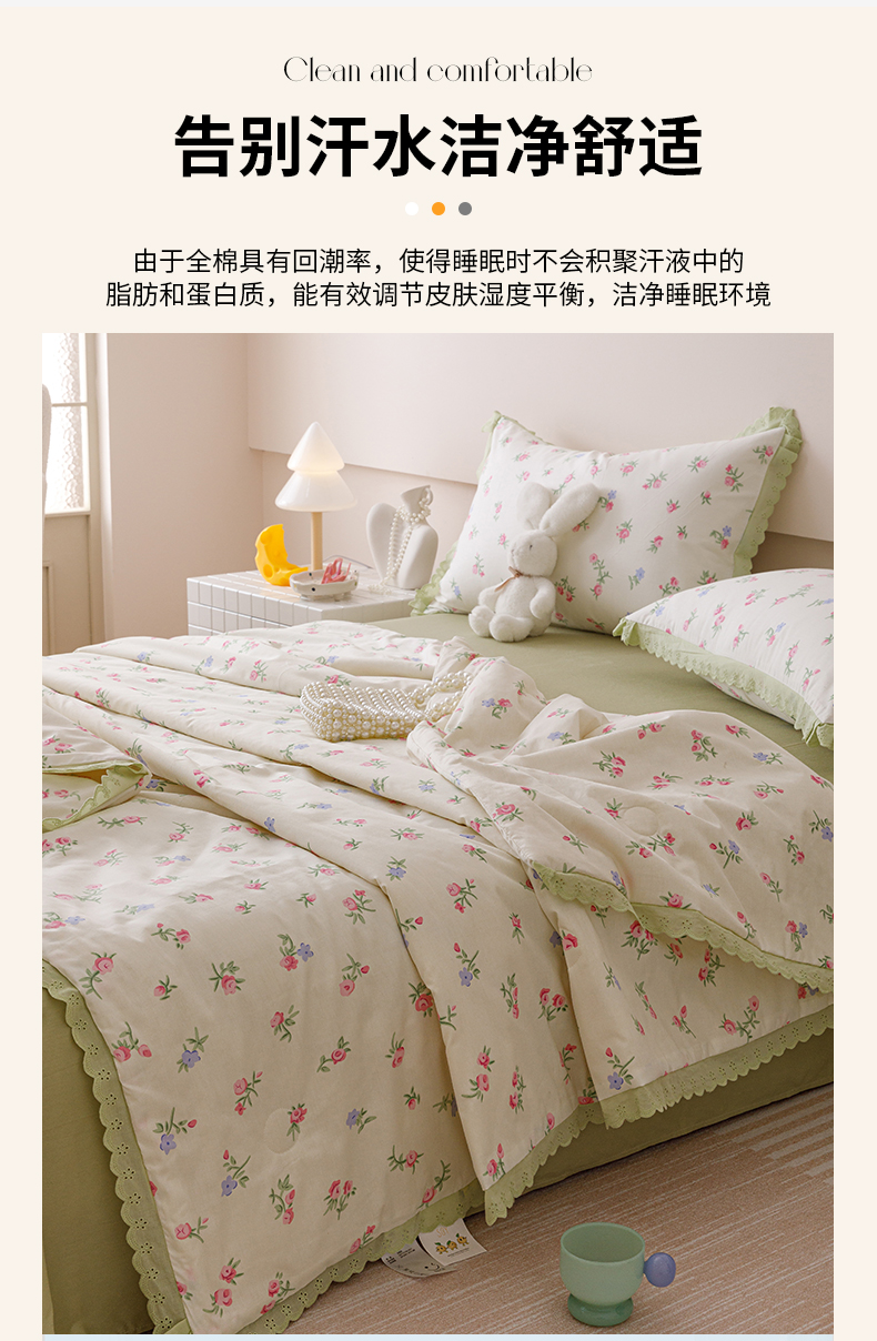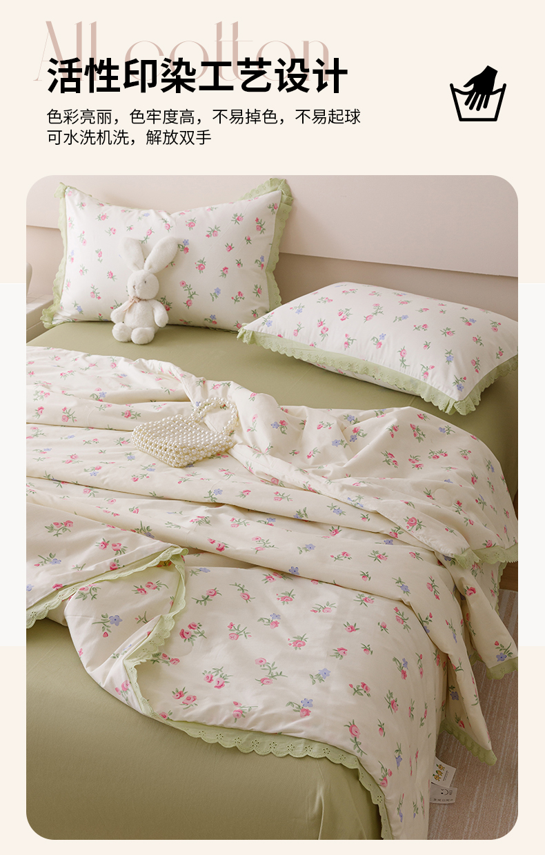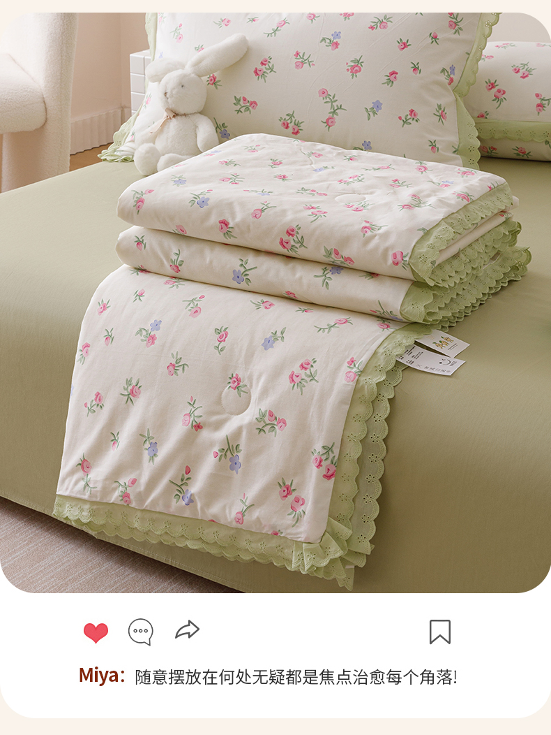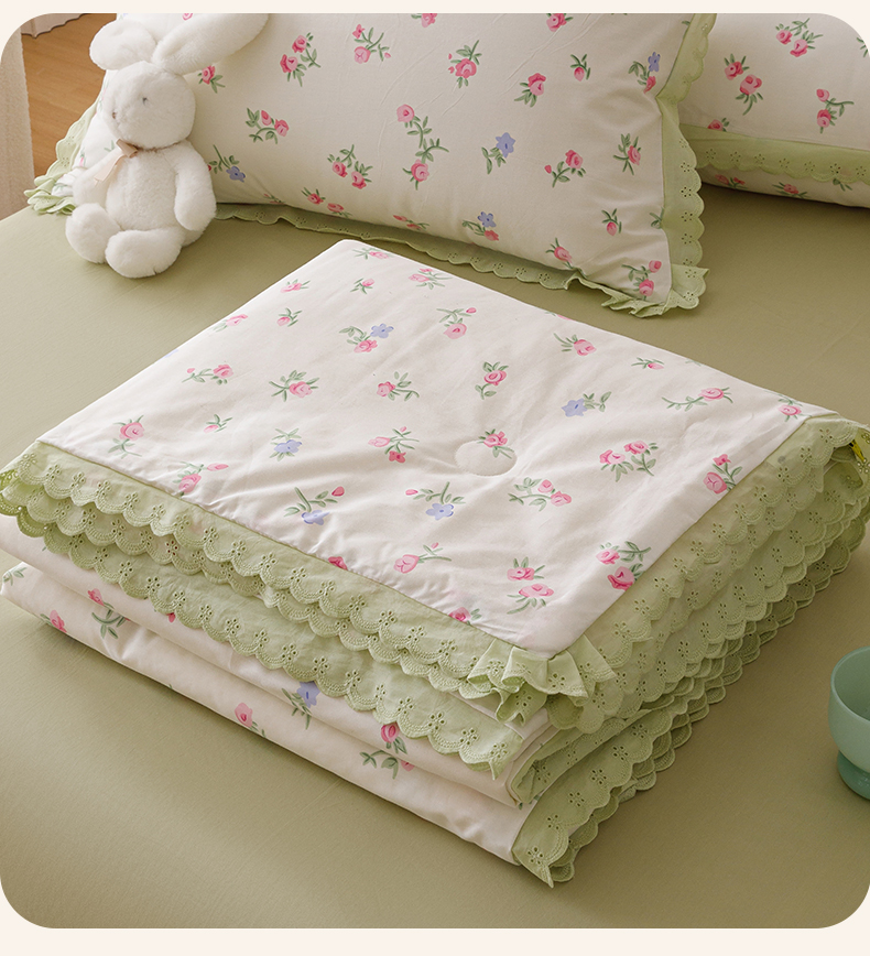 • 91家纺网 家纺一手货源 找家纺 优被业 2025新款全棉韩式小碎花花边夏被 初暖