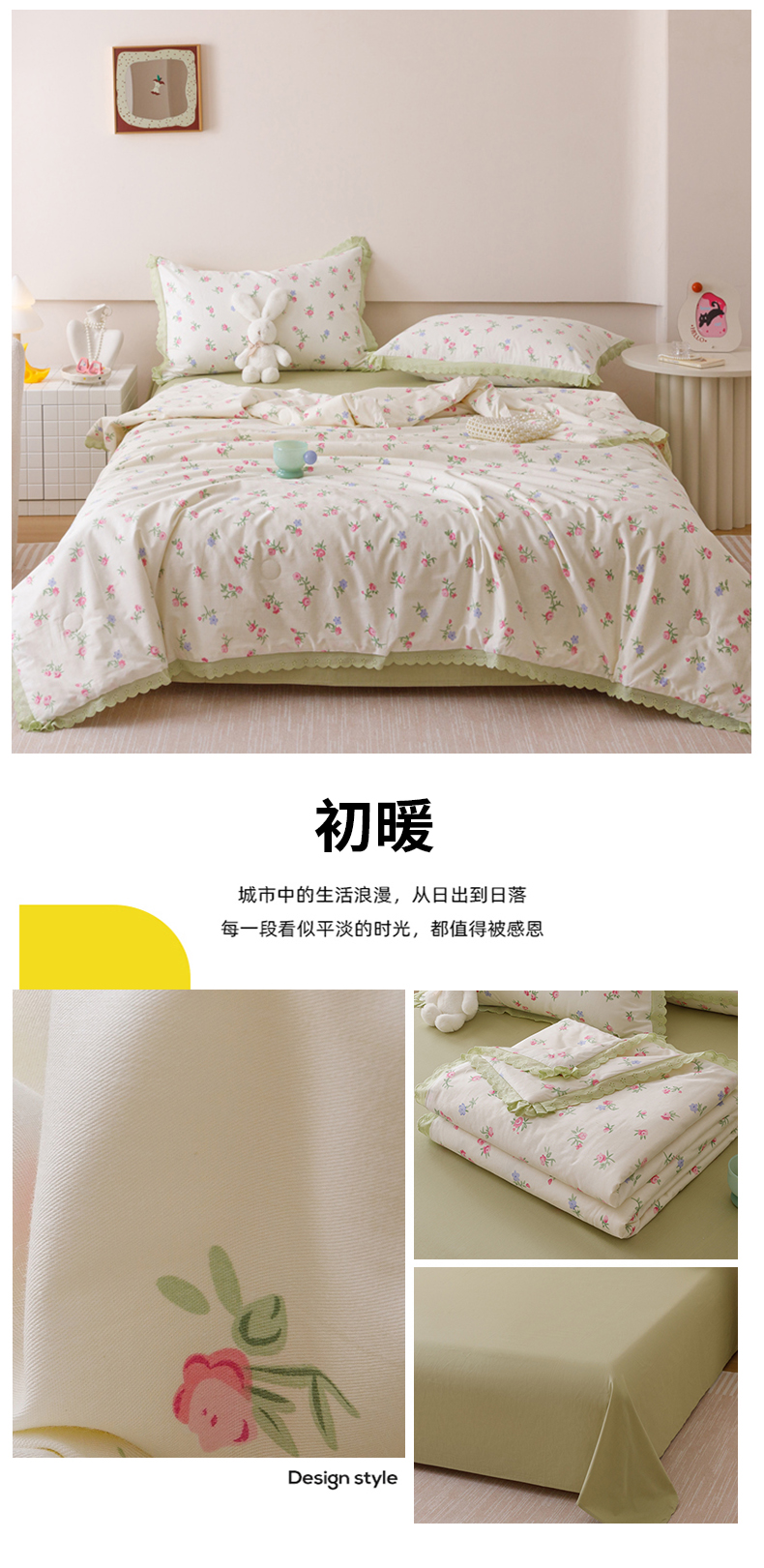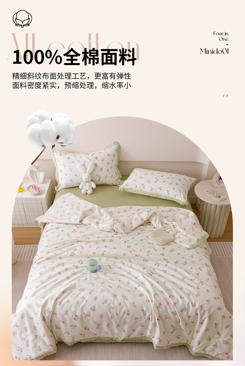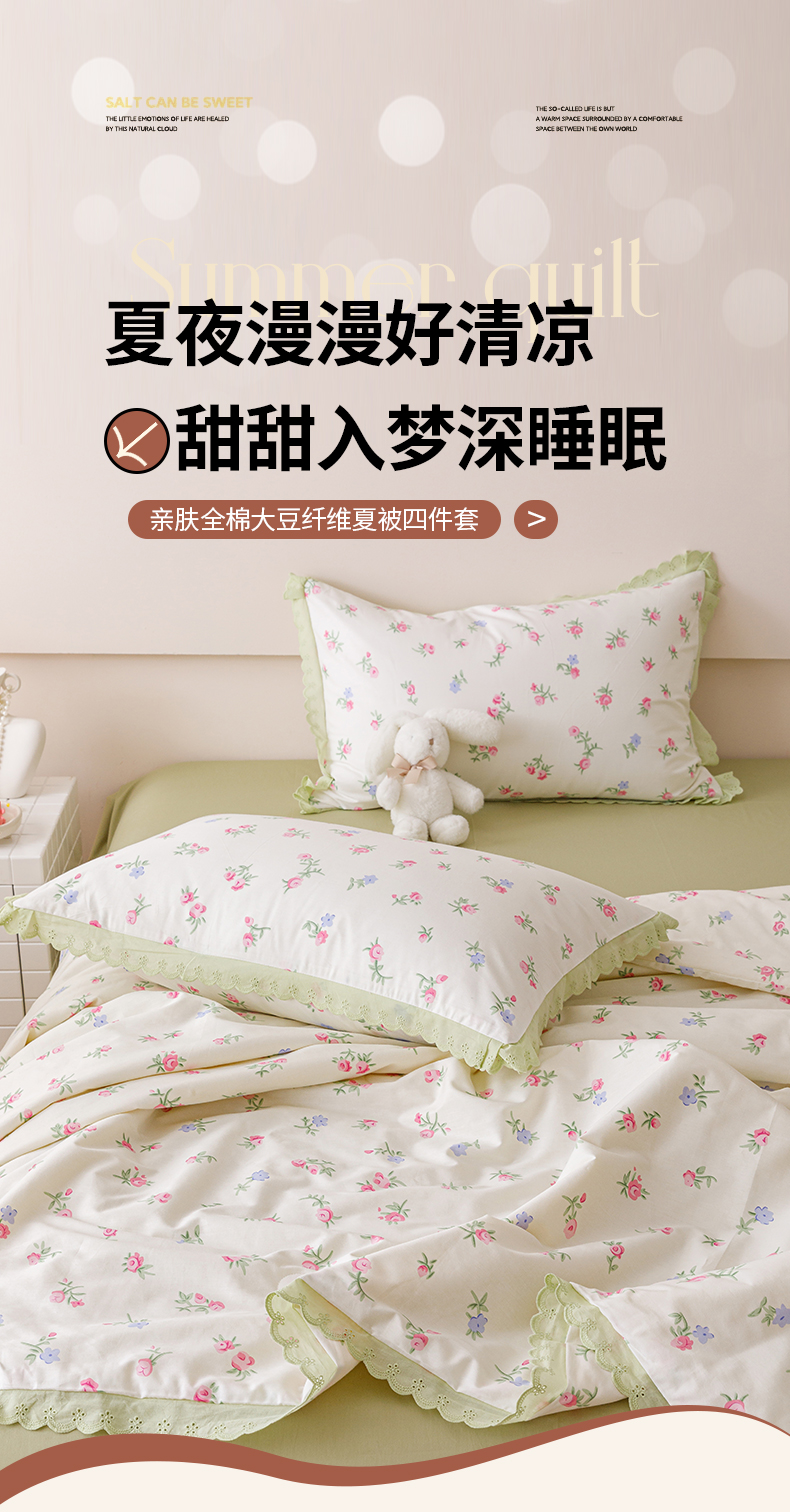 • 91家纺网 家纺一手货源 找家纺 优被业 2025新款全棉韩式小碎花花边夏被 初暖