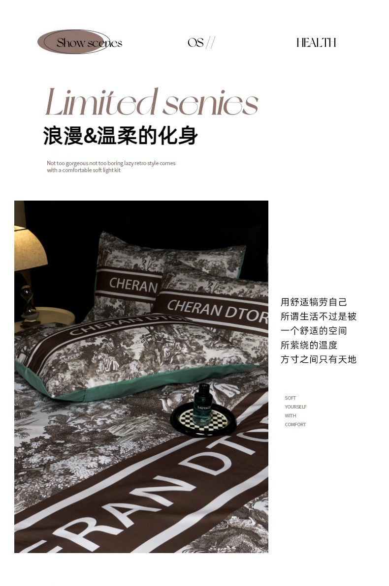 当前位置: 91家纺网 > 商品网购 > 床品套件 > 四件套 > 全棉普通四件套 > 色鬼布艺 2025新款轻奢亲肤纯棉四件套 迟暮
