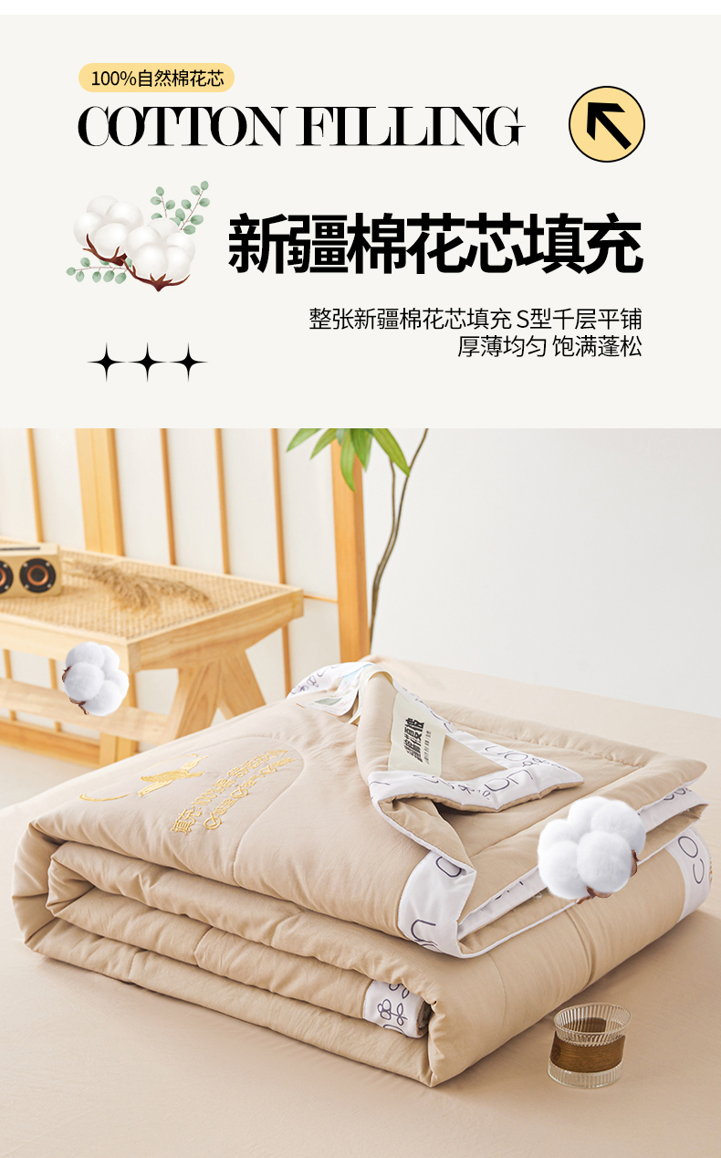商品名称:新疆纯棉花被宽边绣花款全棉水洗棉夏凉被空调被薄款春秋被 千寻-卡其