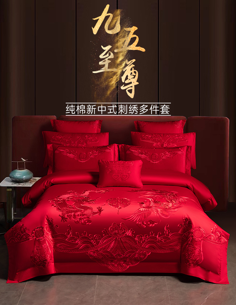 博之洋婚庆 2025新款全棉长绒棉刺绣新中式婚庆系列多件套 九五至尊-红