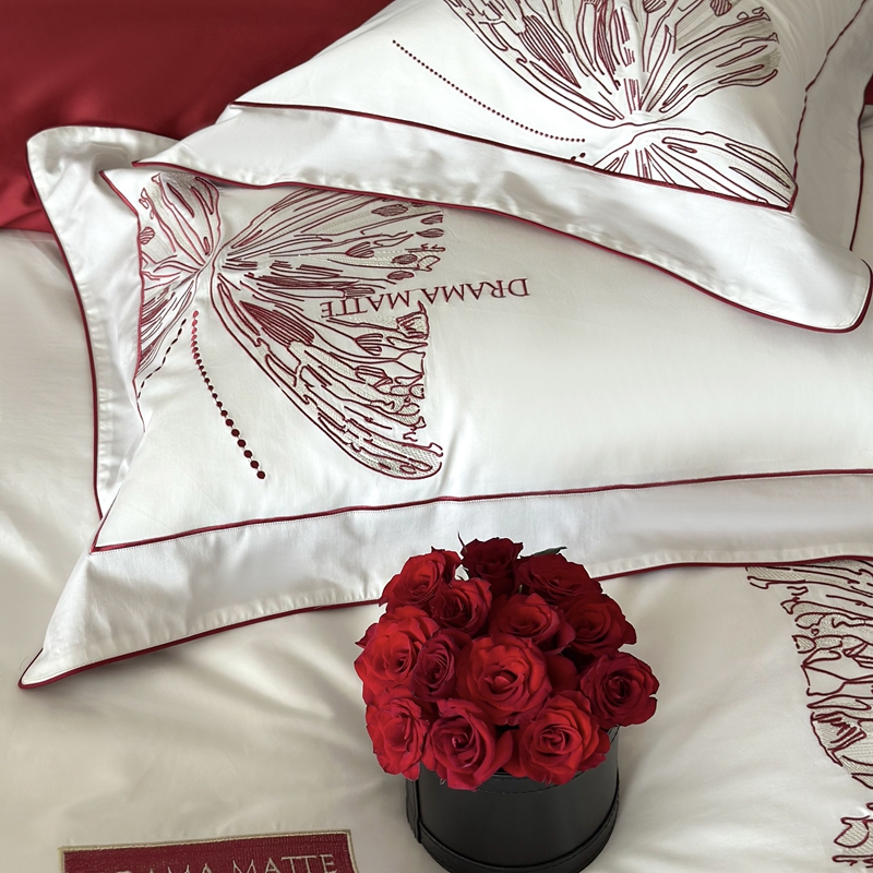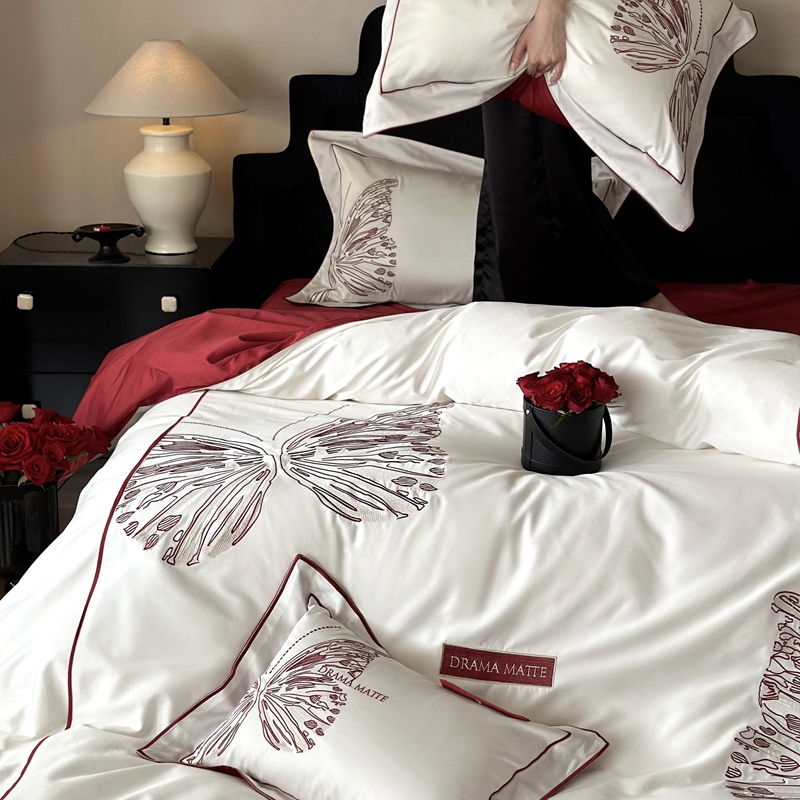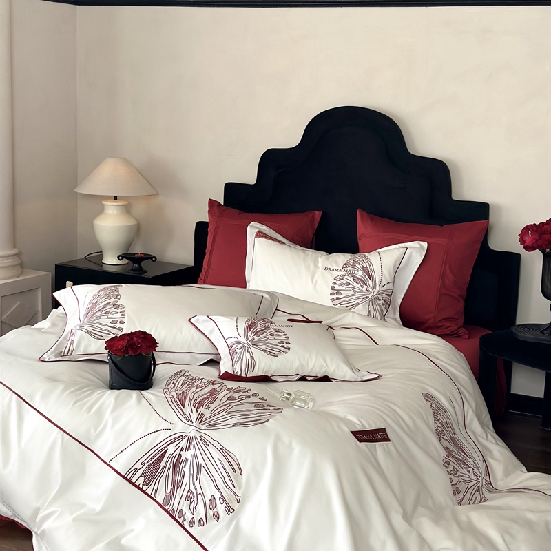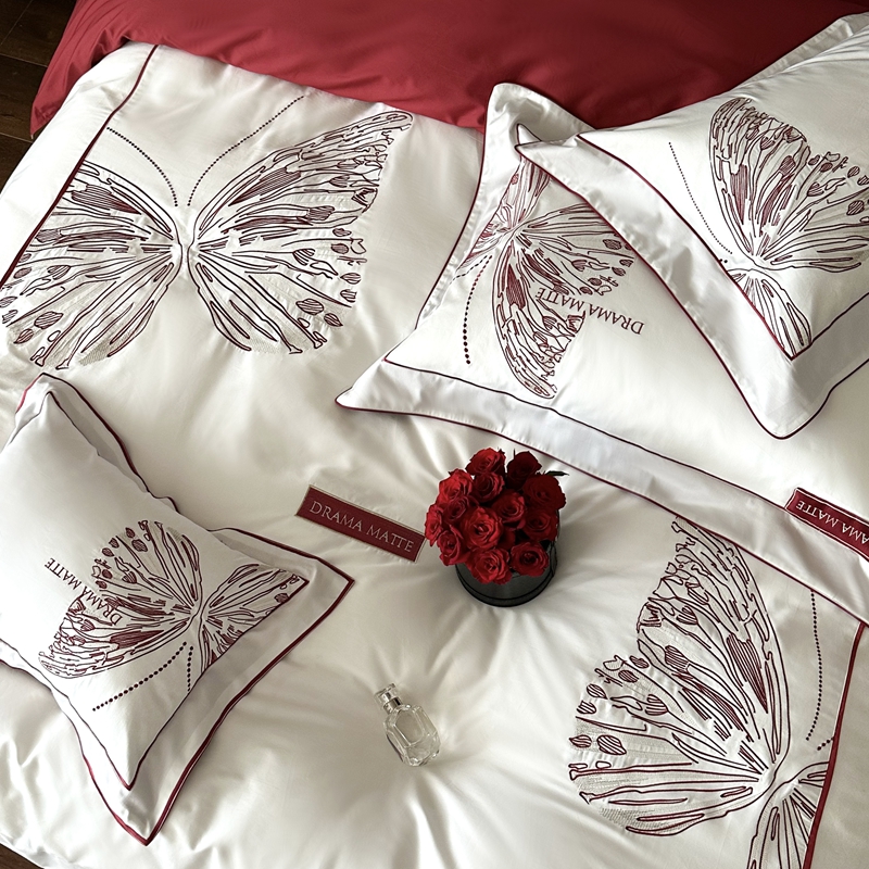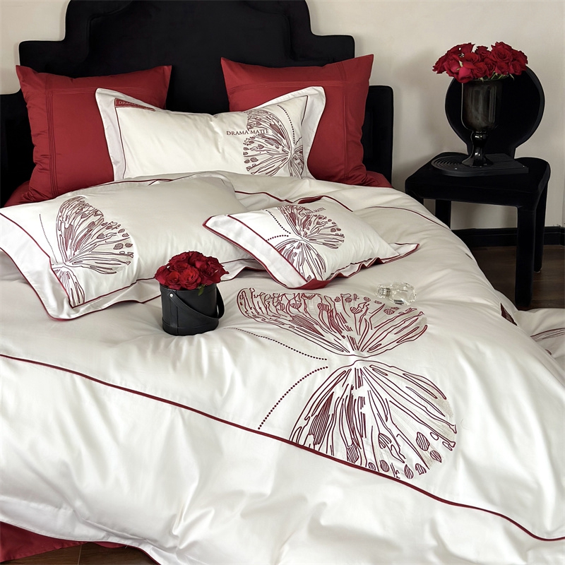 (总)江涞 2025新款高克重牛奶绒刺绣四件套-花月,花月-高级红