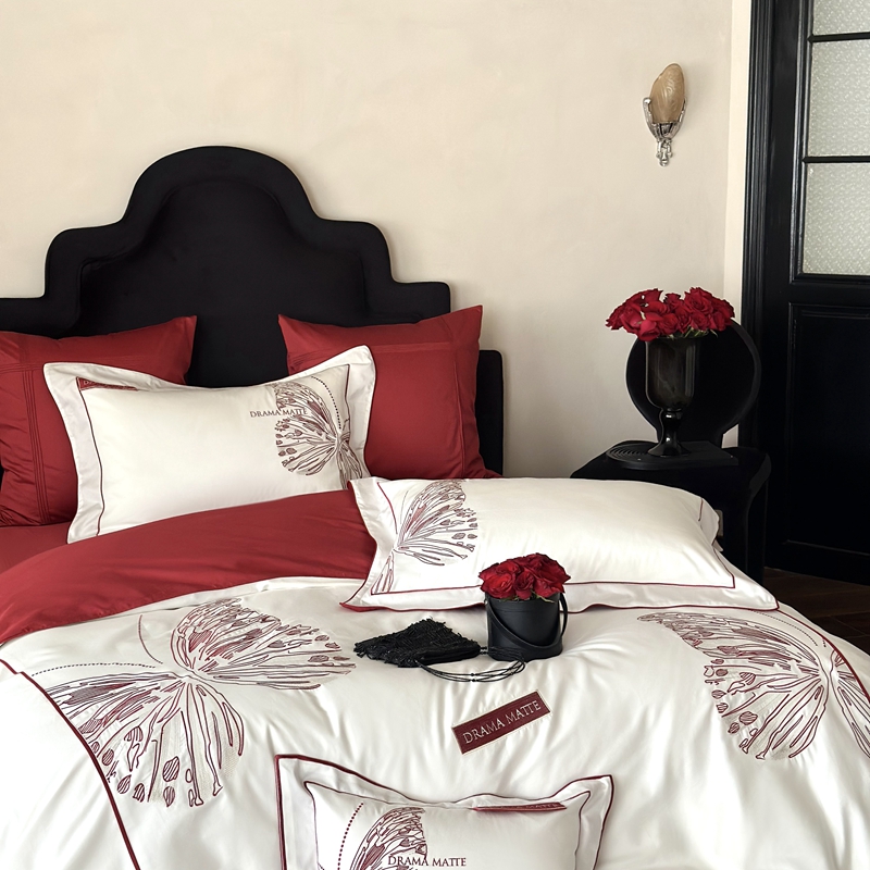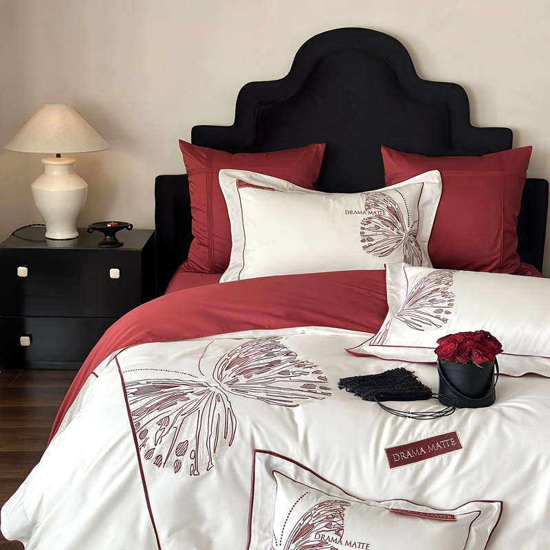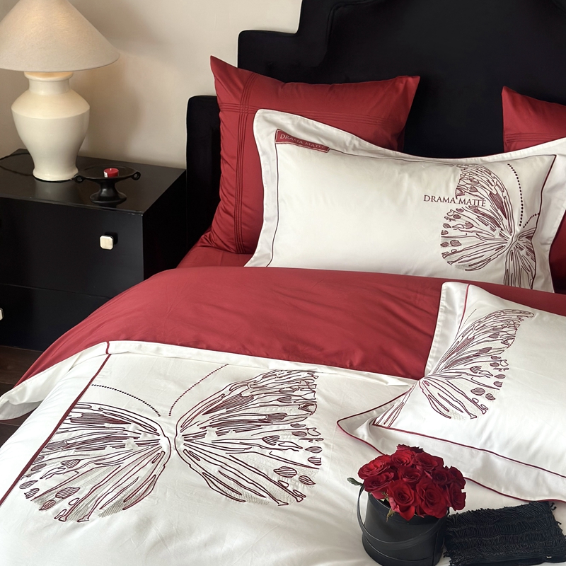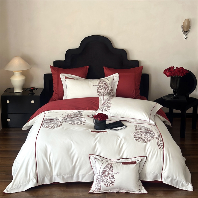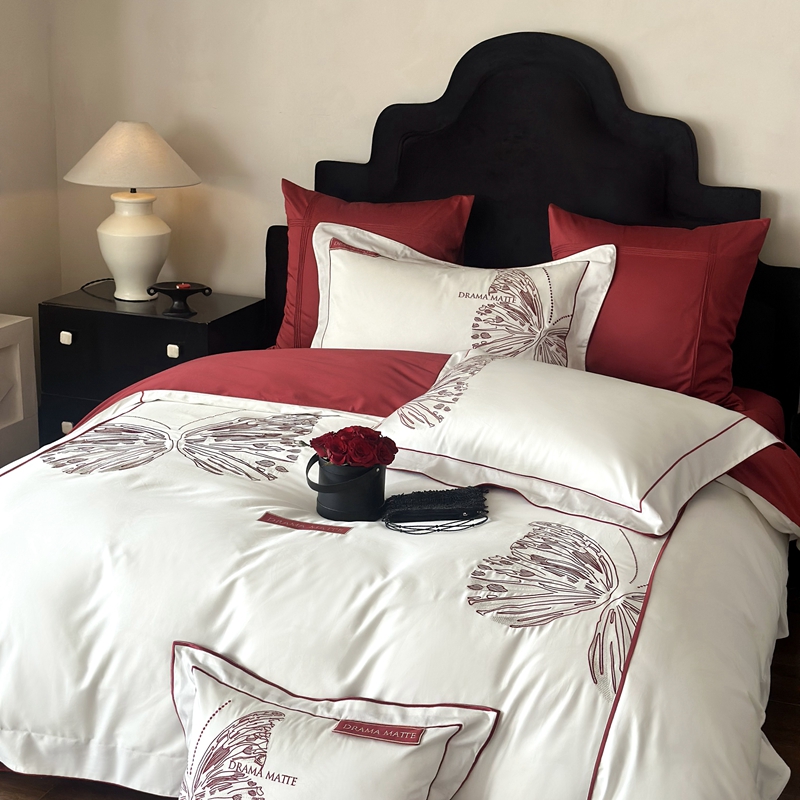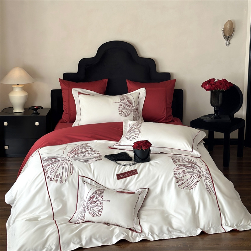 (总)江涞 2025新款高克重牛奶绒刺绣四件套-花月,花月-高级红