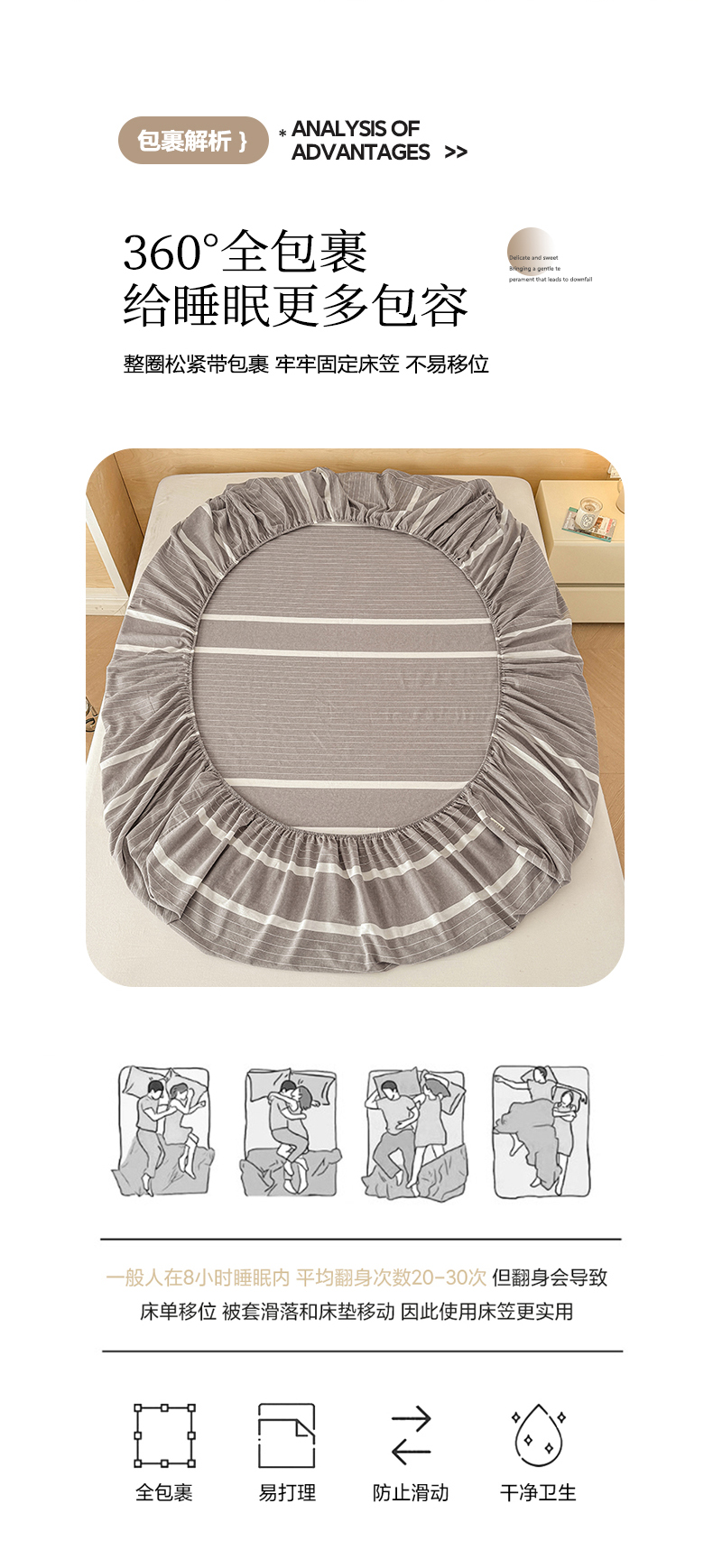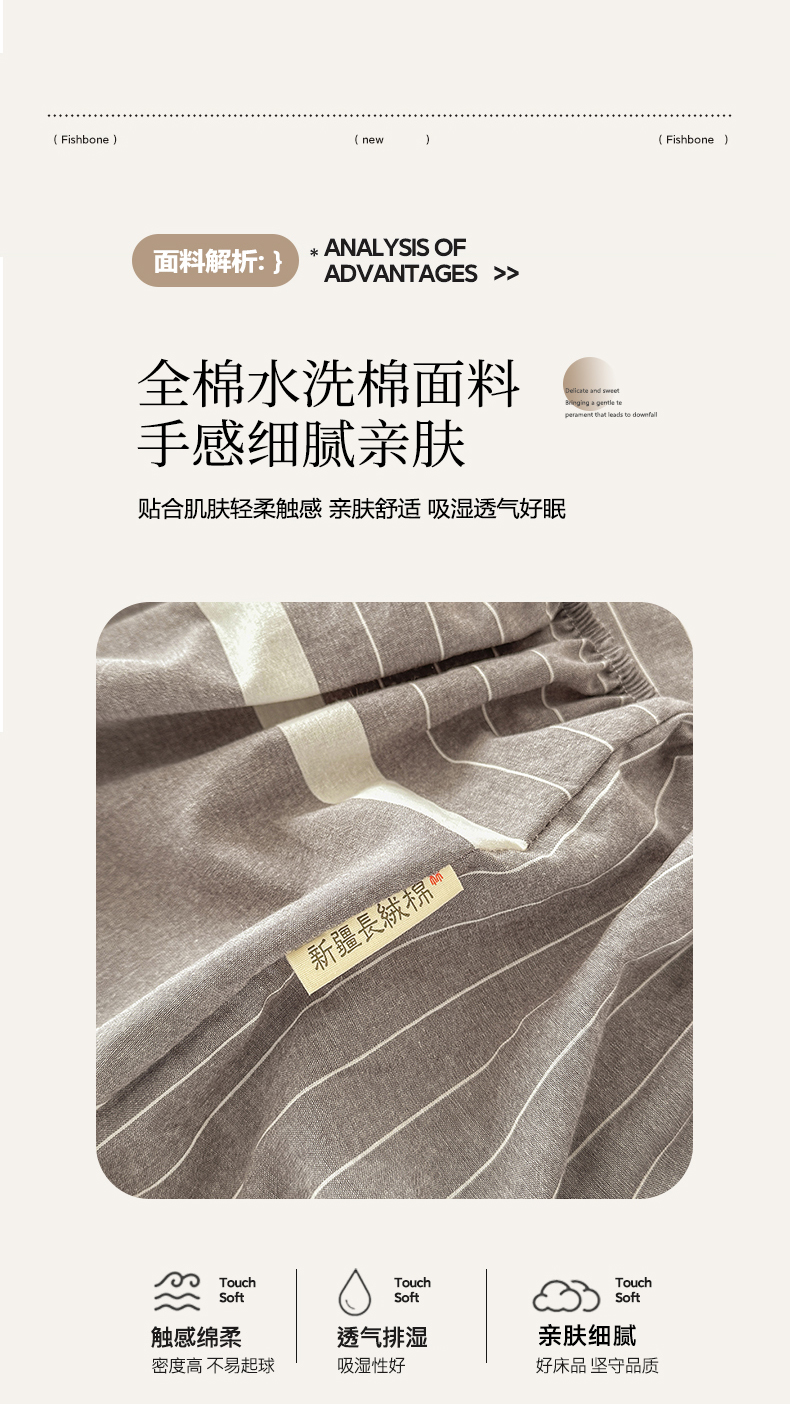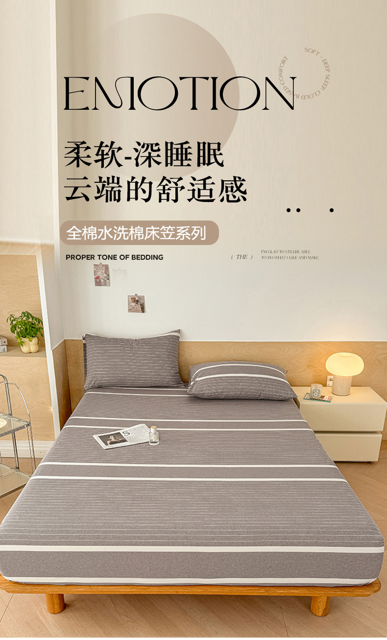 • 91家纺网 家纺一手货源 找家纺 晓时候 2025新款100%全棉色织水洗棉床笠全棉床笠纯棉床笠 灰细条